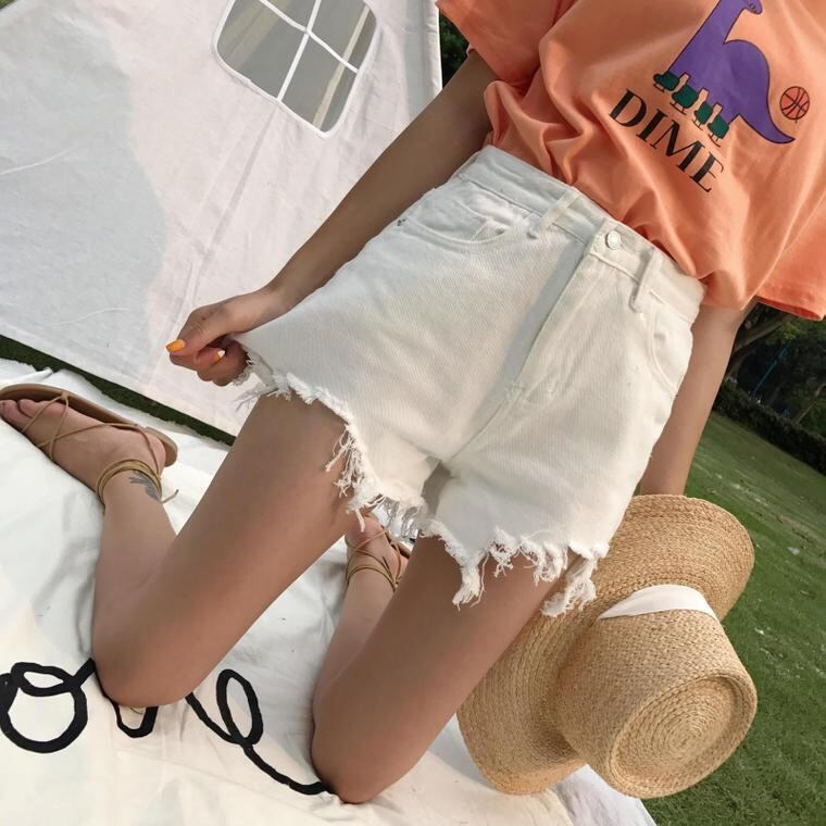 スプリングオータムスタイルウェストワイドレッグパンツ ルーズ薄手ホワイトジーンズ ショーツ 春物 秋物 ブルマー ワイドパンツ misskkl94291094315