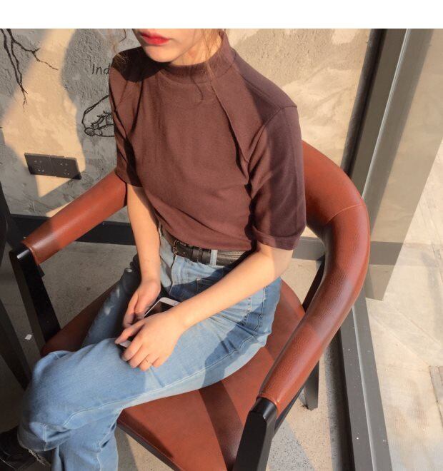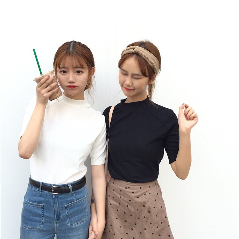サマーソリッド カラーショートスリーブTシャツ シャツ ベーシックスリムトップス 夏物 ソリッドカラー misskkl31140576311
