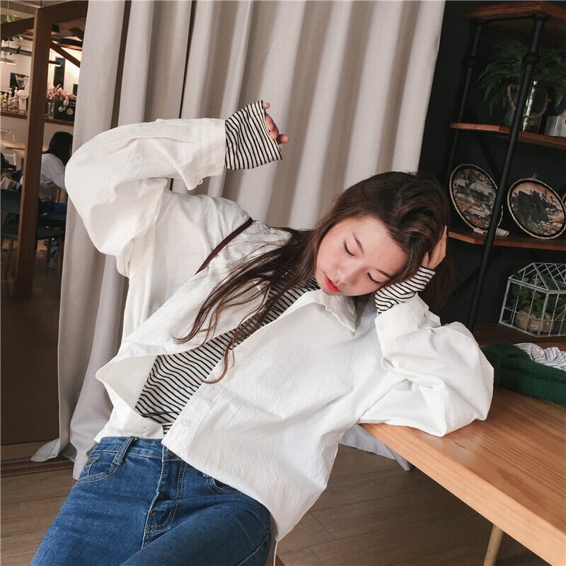 スプリングオータムカジュアルシャツ ルーズカラーホワイト ロング 春物 秋物 misskkl57399615851