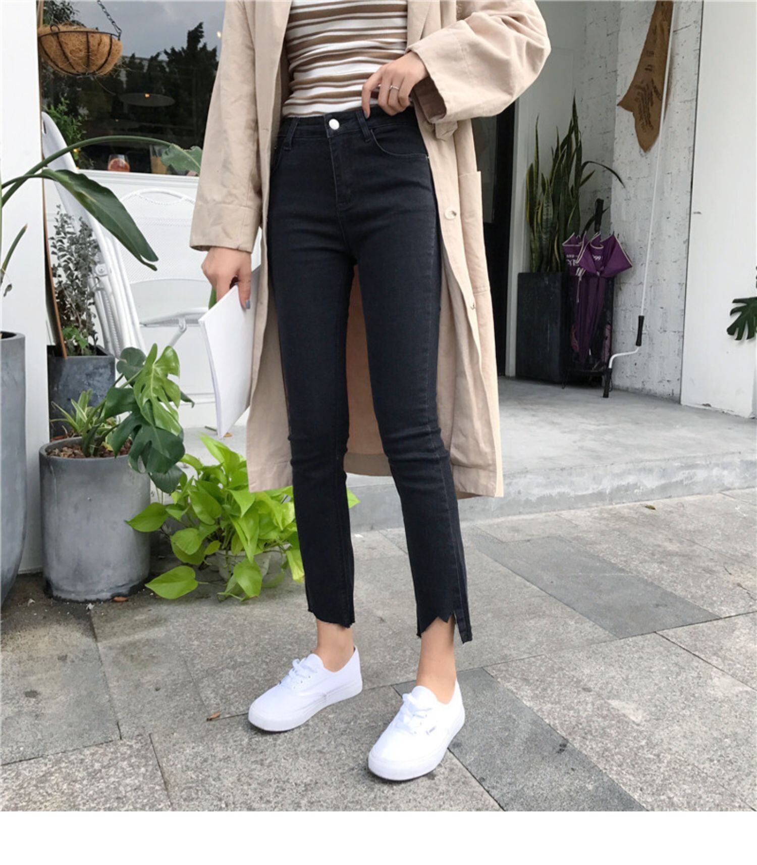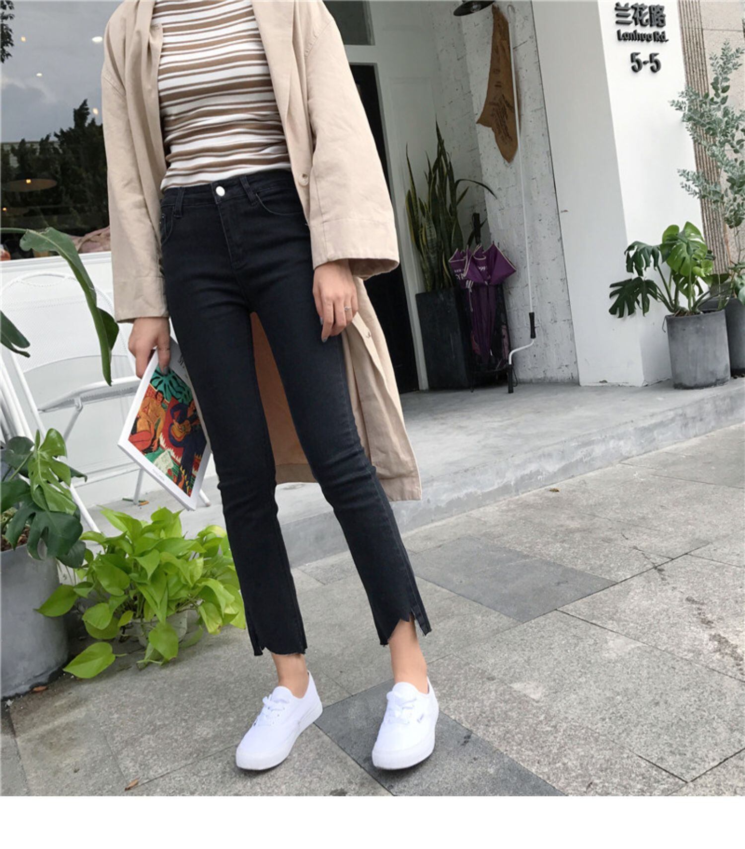 スプリングオータムハイウェストスリムクロップドジーンズ スキニーパンツ レディース レッド 春物 秋物 misskkl95178104439