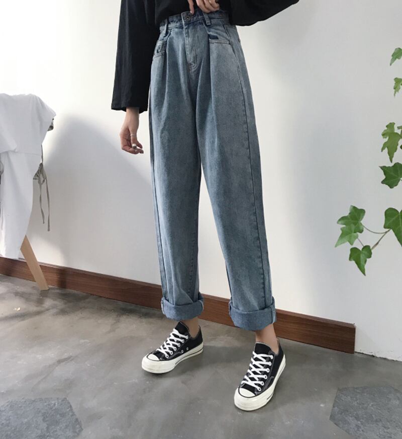 スプリングオータムスタイルハイウェストウェストスリムパンツ ルーズジーンズ レディース 春物 秋物 misskkl20847043387