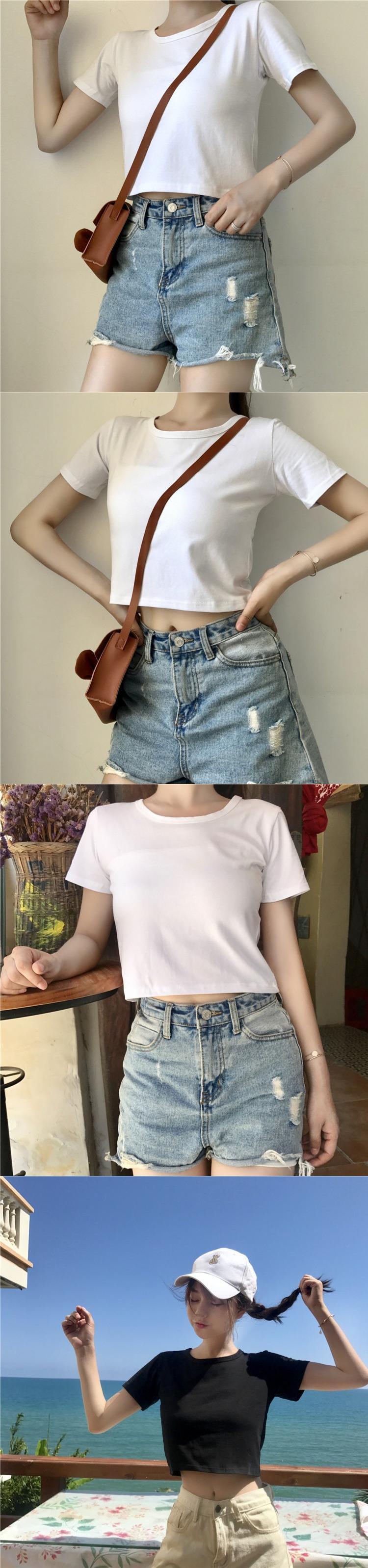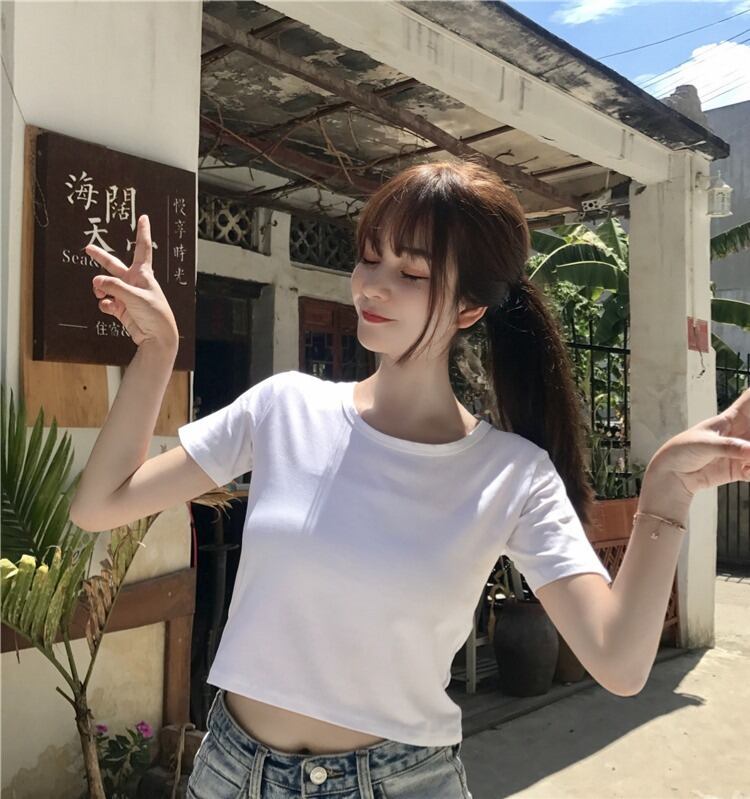 サマーカラーショートスリム半袖スリーブ薄手ブラックTシャツ トップス ハーフスリーブ 夏物 ピュア misskkl19223342563