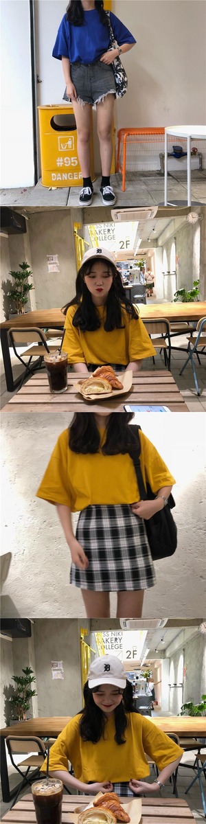 秋の女性のシンプルなトップス緩い、薄いキャンディーソリッドカラーのラウンドネック半袖Tシャツトップス底入れシャツの潮 misskkl46266909389