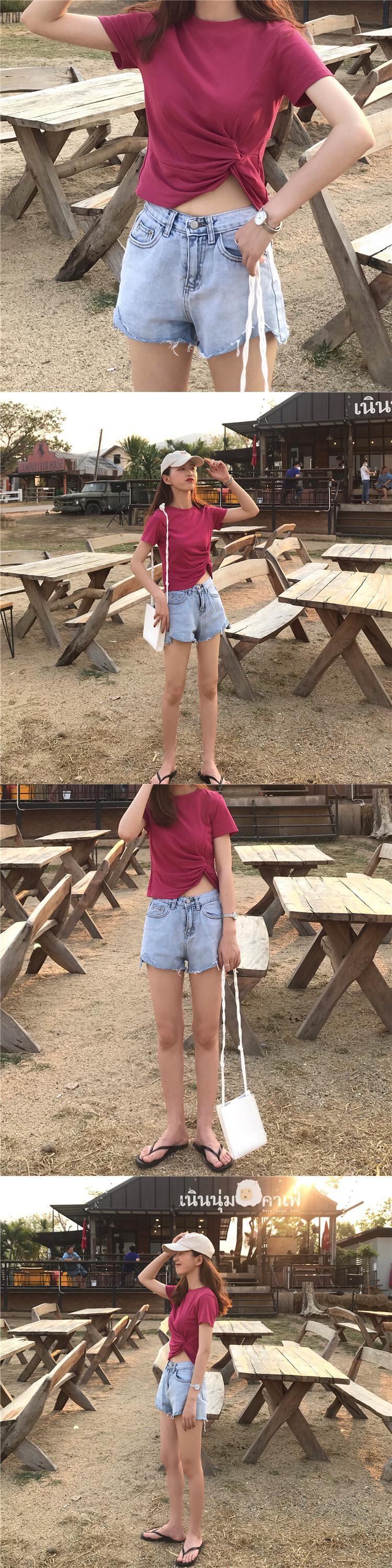 イレギュラーワイルドショート半袖Tシャツ女性2019新入生シンプル半袖トップイン潮の夏バージョン misskkl33684342481