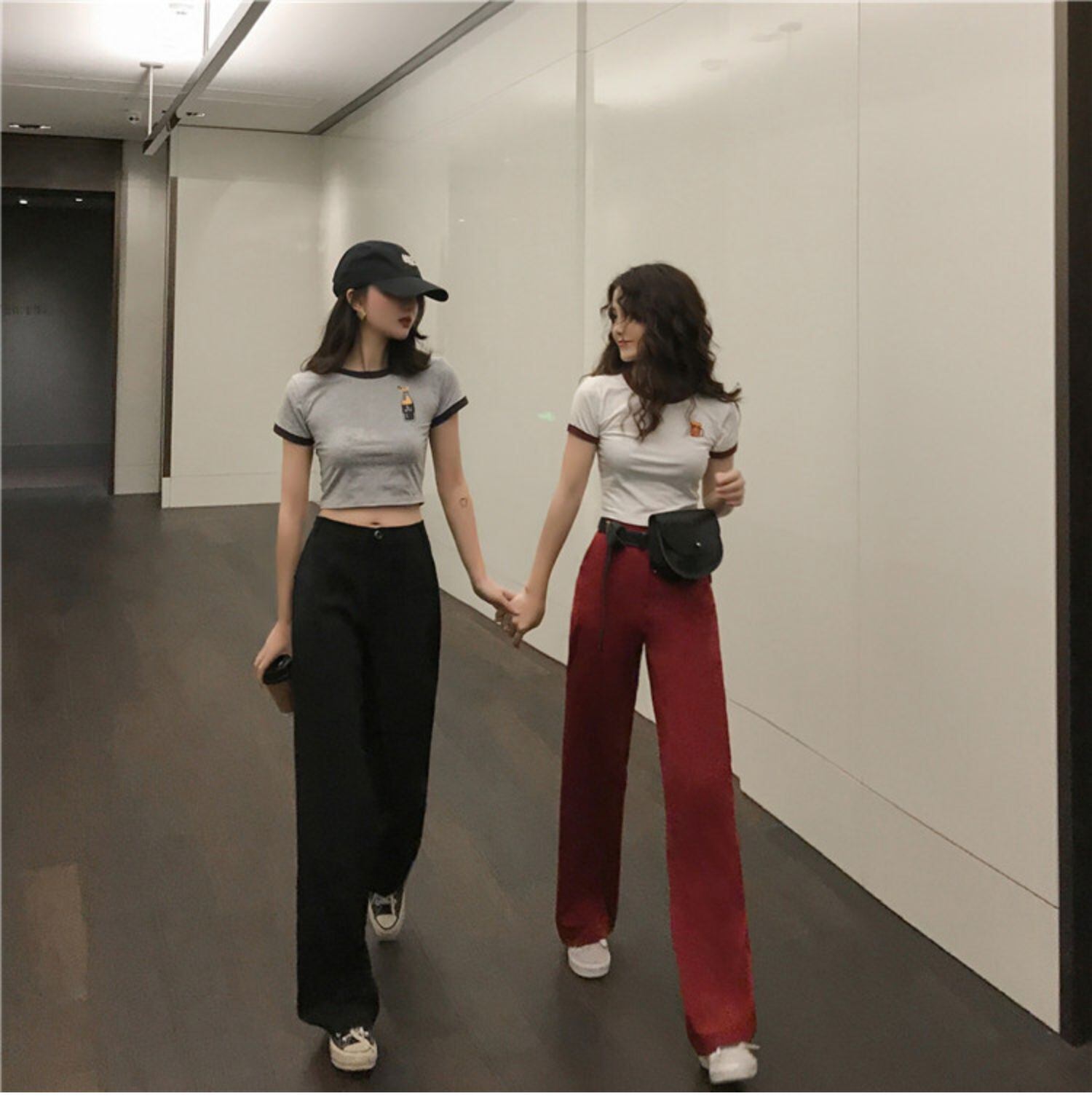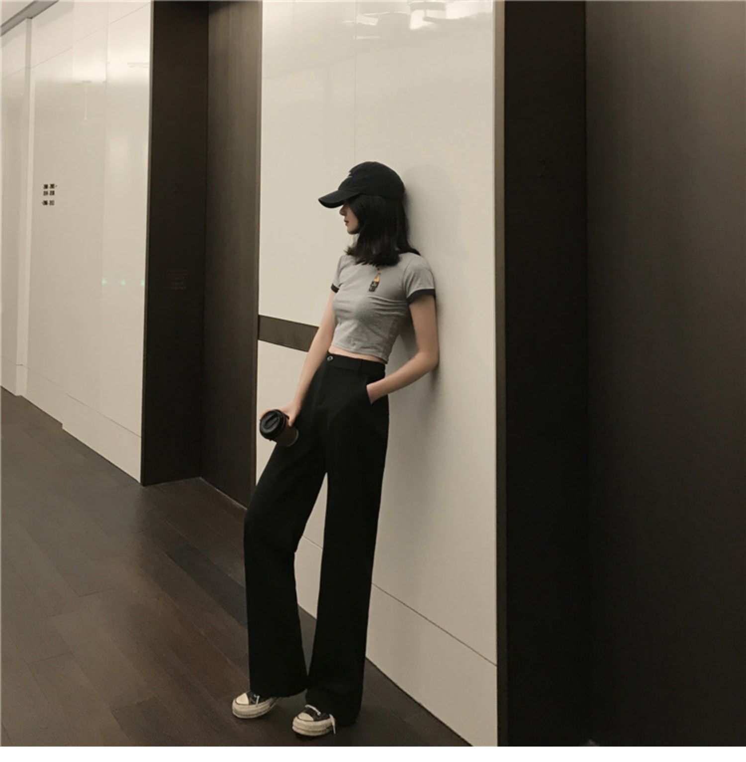 秋風ハイウエストパンツ、モップパンツ、ゆったり細めのカジュアルパンツ、ストレートレッグパンツ、香港風ワイドレッグパンツレディース misskkl23497785745