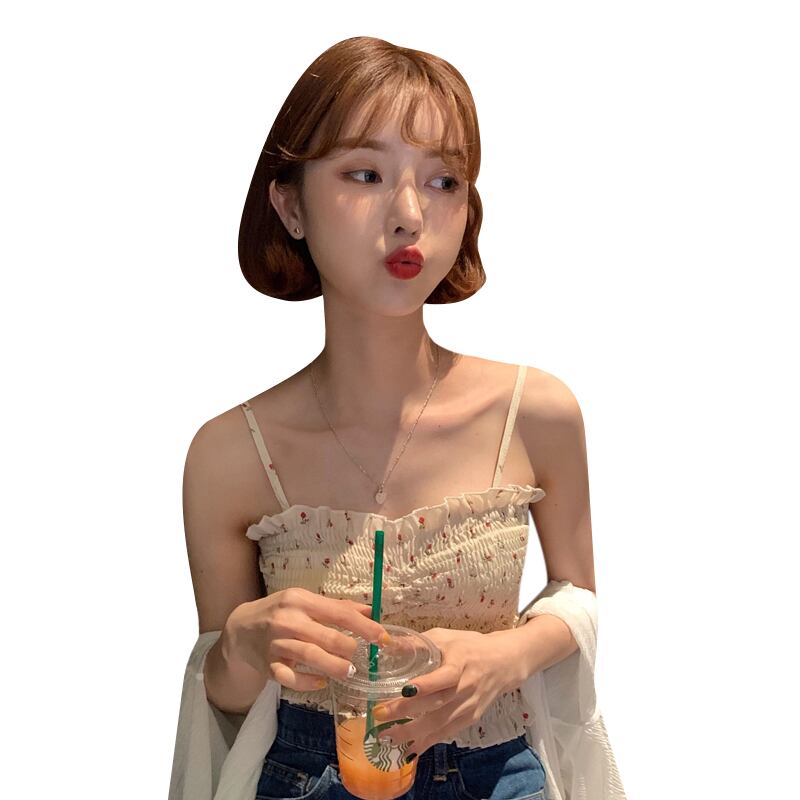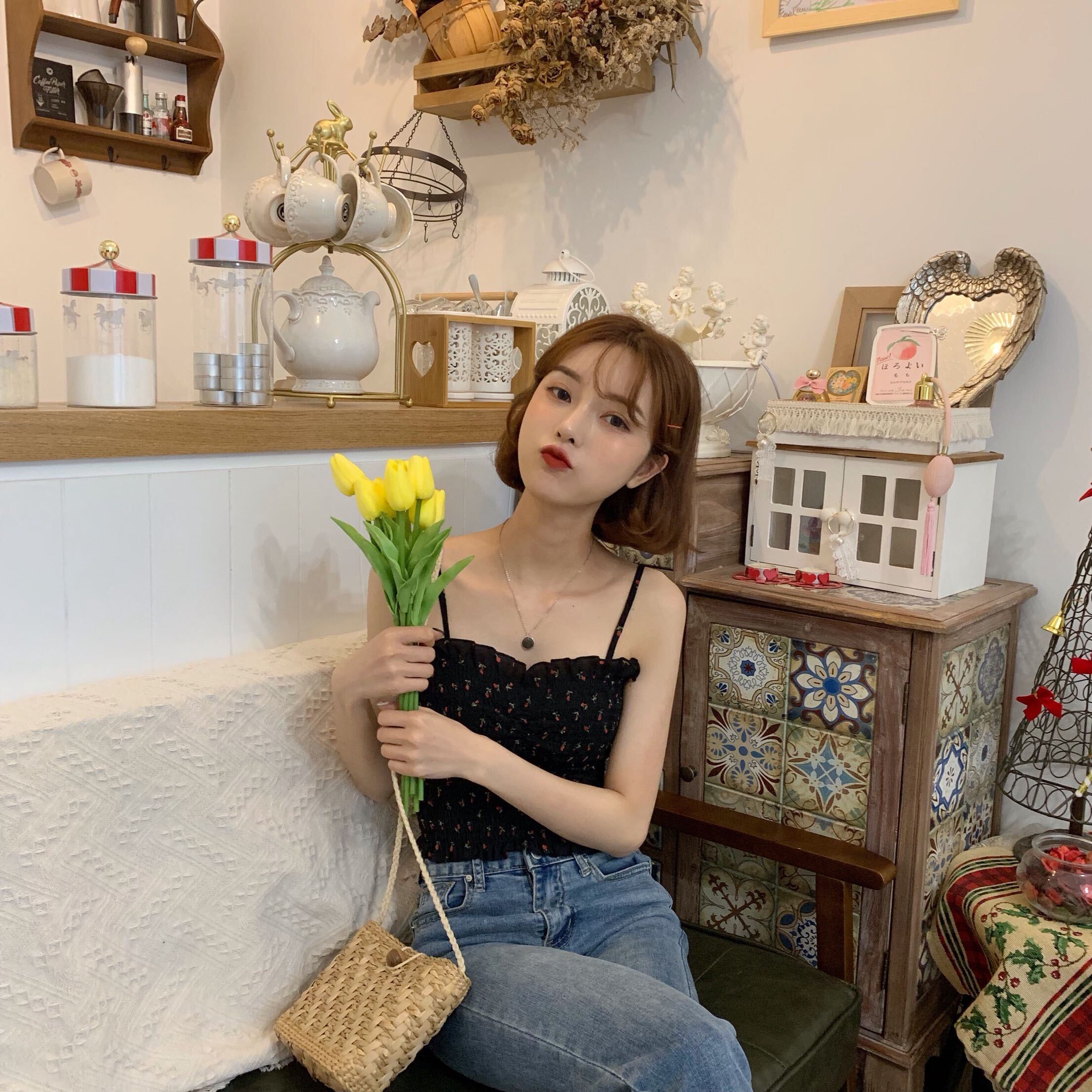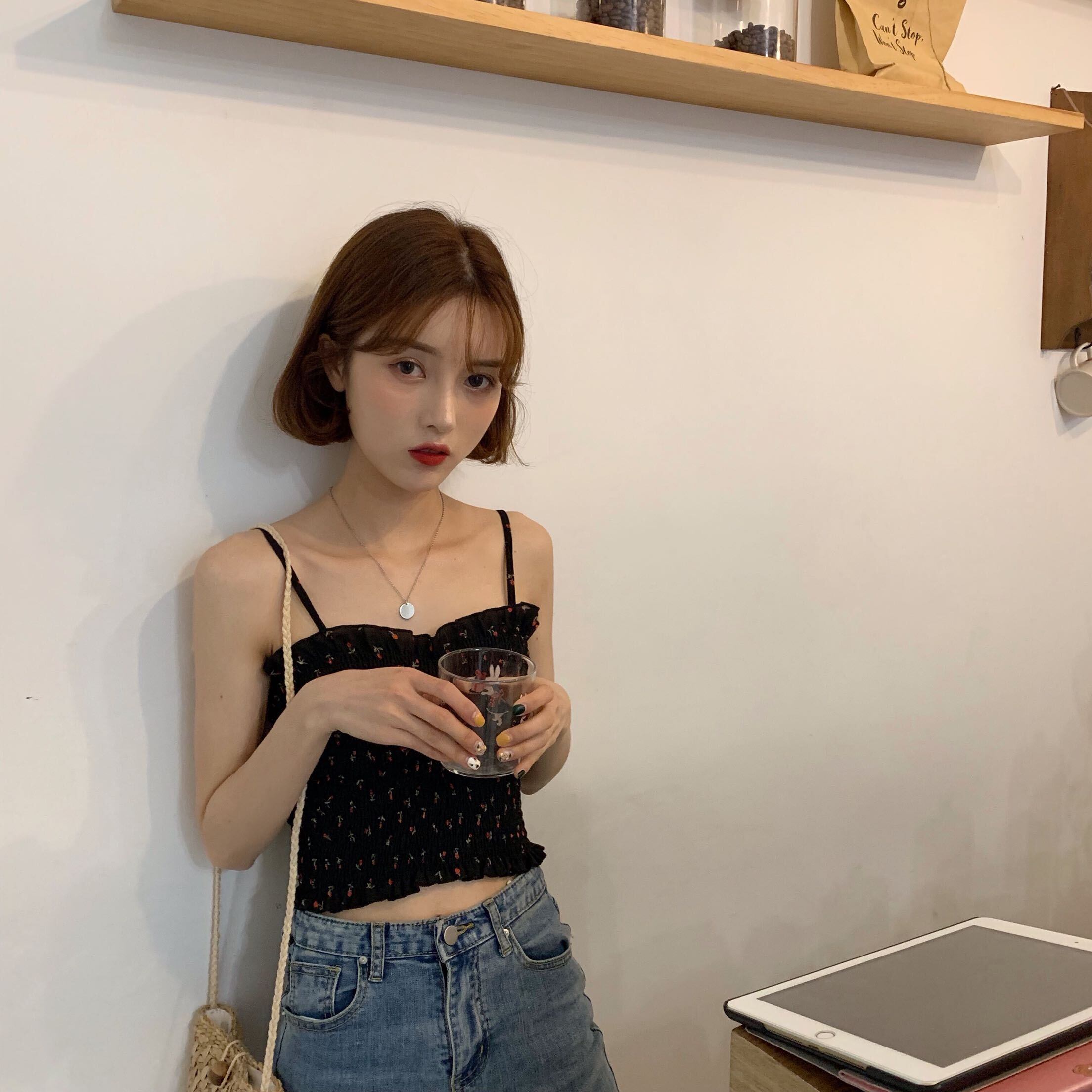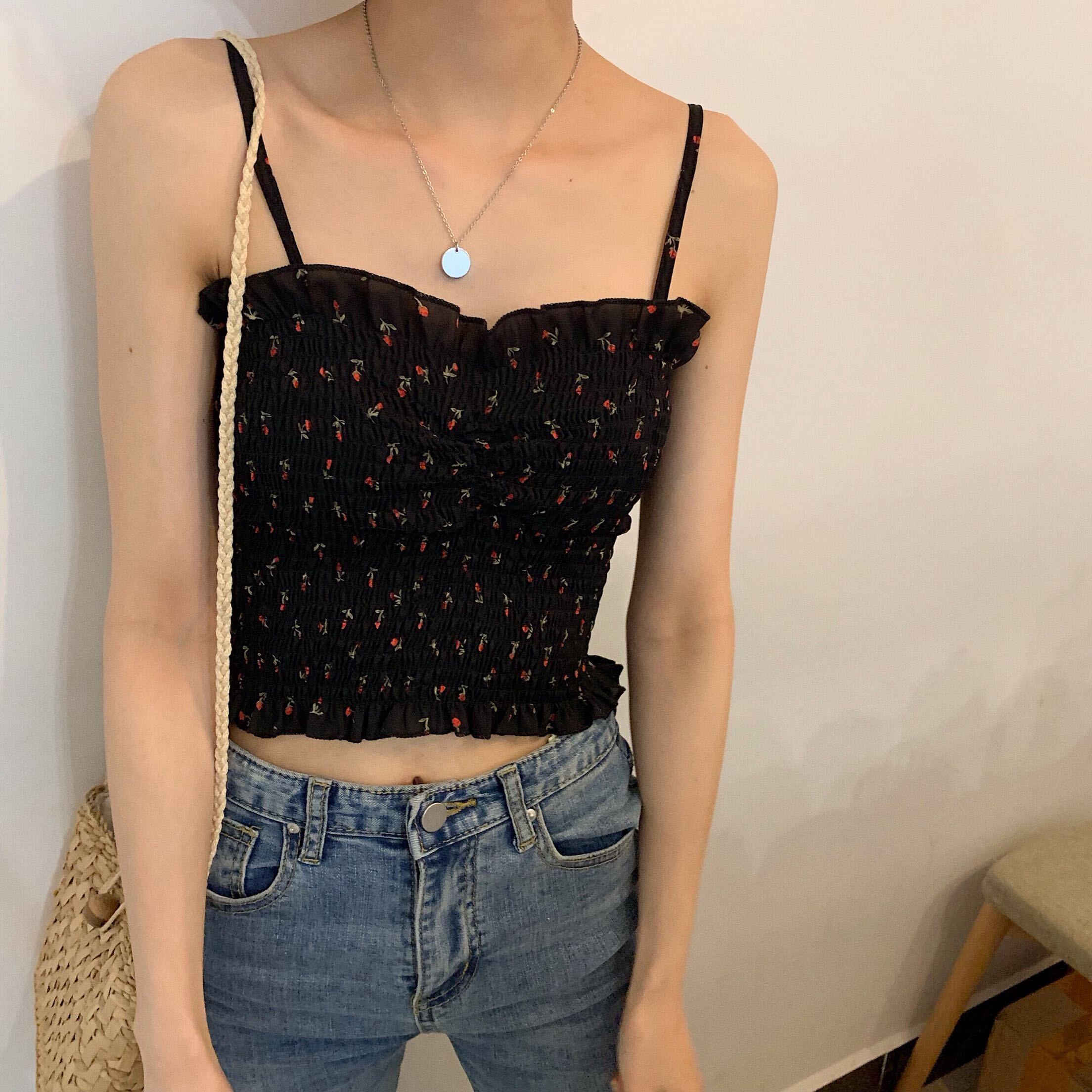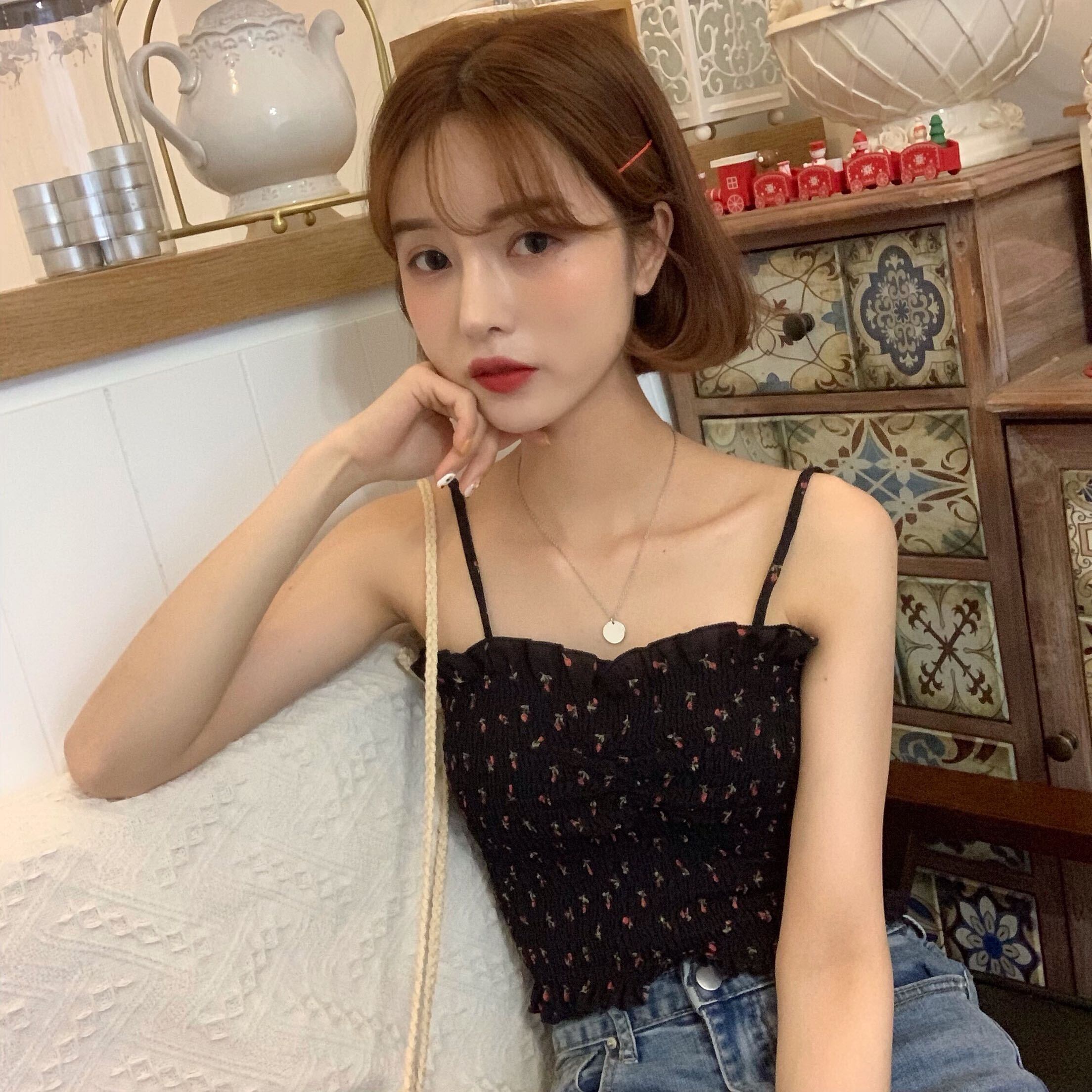 秋スタイルのオールマッチストラップレスフローラルスモールキャミソールレディースボトムスシャツセクシーインナーウェアショートコートアウターウェア misskkl98407769018