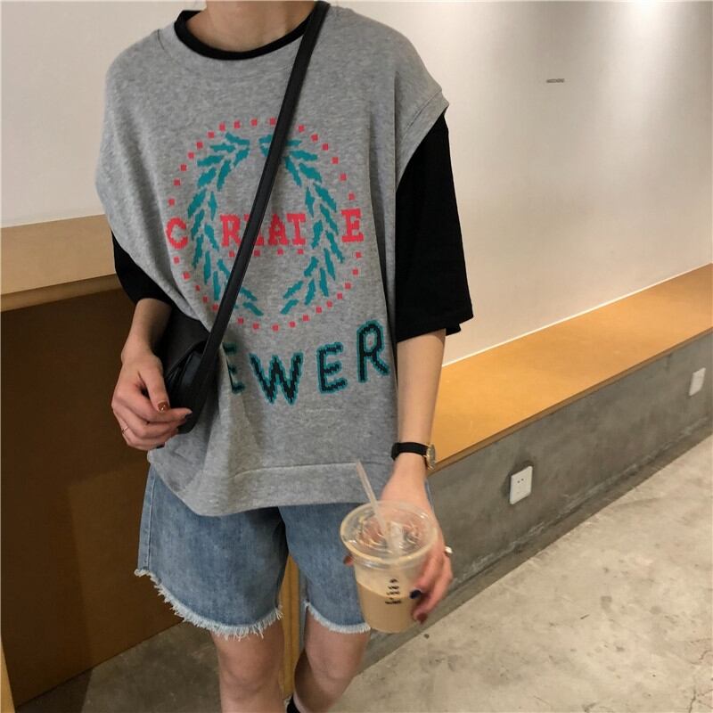 夏スタイルアウターベストカレッジスタイル2019新しいツーリングジャケットカジュアルベスト+ルーズ半袖Tシャツレディース misskkl20936450077