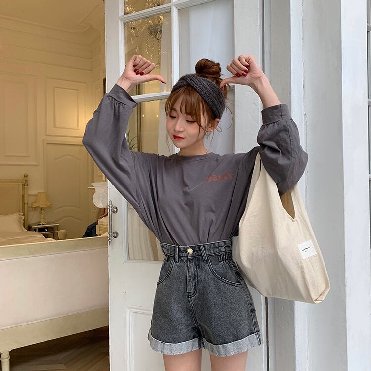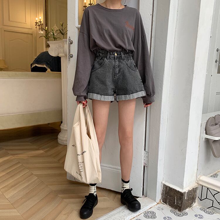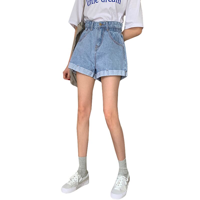 サマーパンツ、ハイウエスト、薄手ジーンズ、ロールアップワイドレッグパンツ、女性ショーツ、学生パンツ、ゆったりストレートレッグパンツ misskkl96968196635