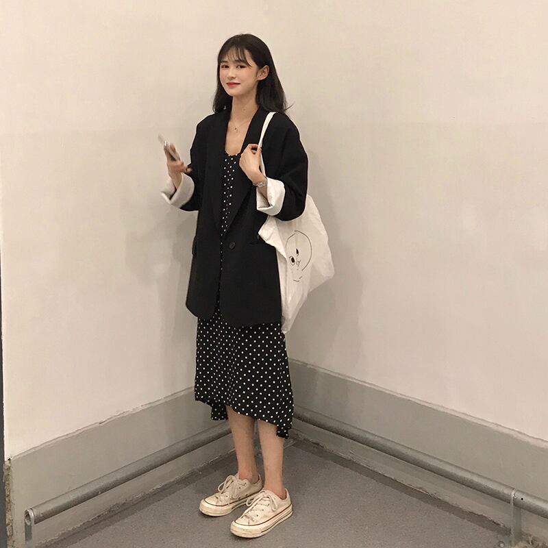 2020年春と秋の新しいバージョンのネット赤いカジュアルな小さなスーツのジャケット緩い中間の長さの黒いスーツのジャケットの女性 misskkl84449869125