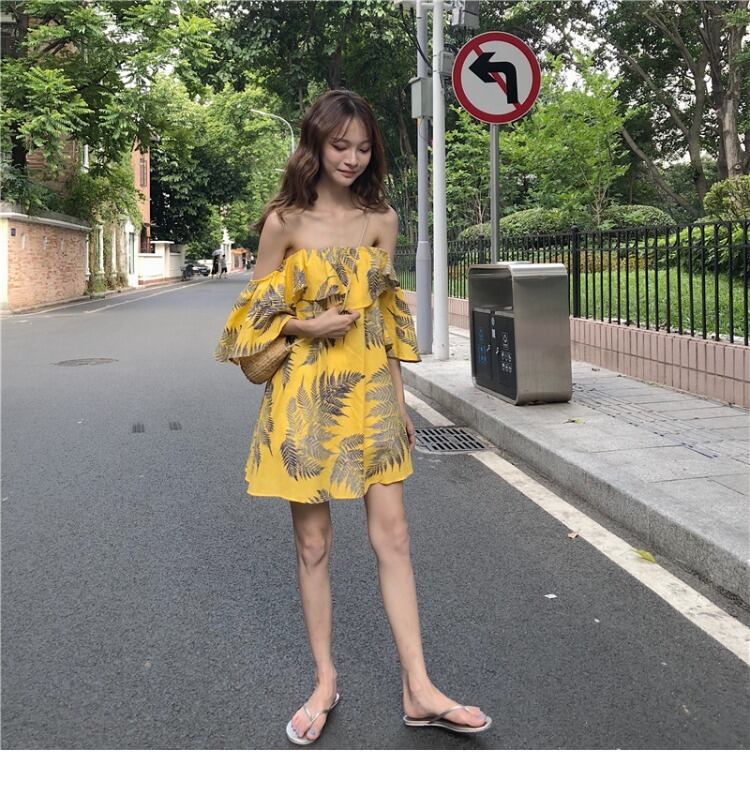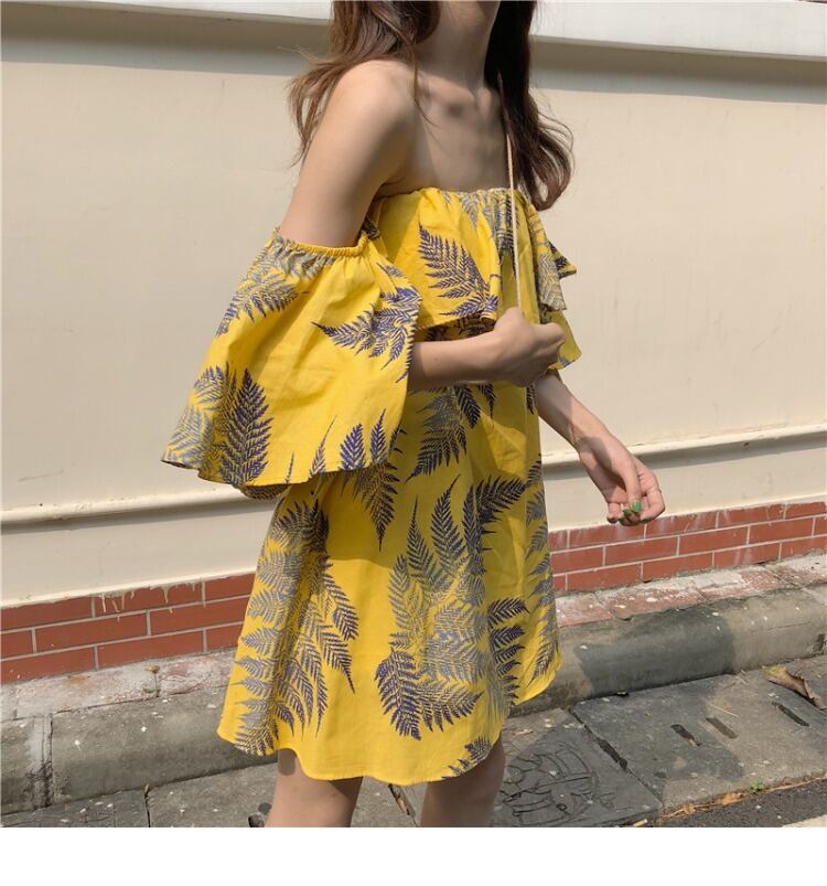 夏の婦人服気質甘いフリルショルダーストラップレスミドル丈チューブトップスリムドレスショートスカート misskkl73115836680