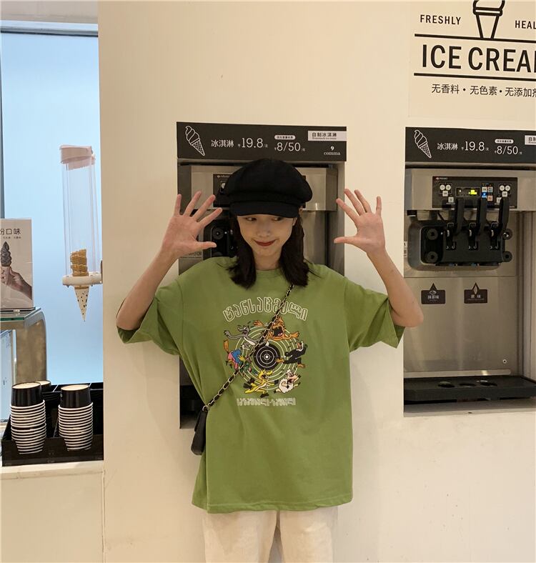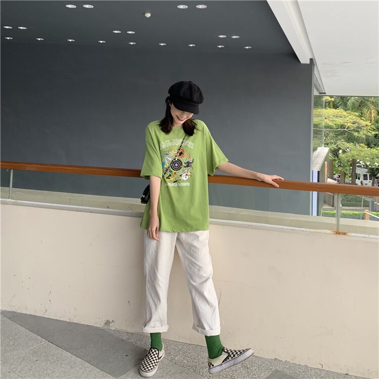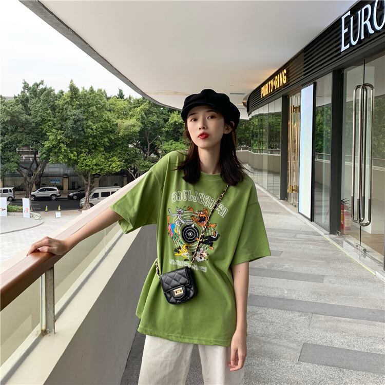 ピュアコットン2020新しいネット赤アボカドグリーン緩い半袖Tシャツレディース夏半袖トップイン潮潮compionate misskkl64863429131