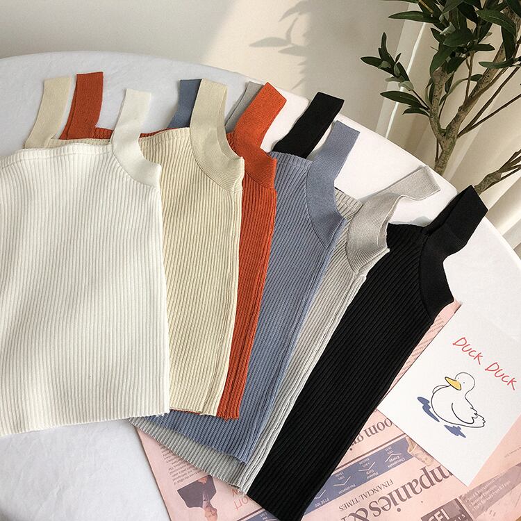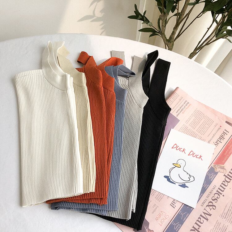 サマーホワイトショートニットセーター シャツ ノースリーブトップス 夏物 misskkl68106161883