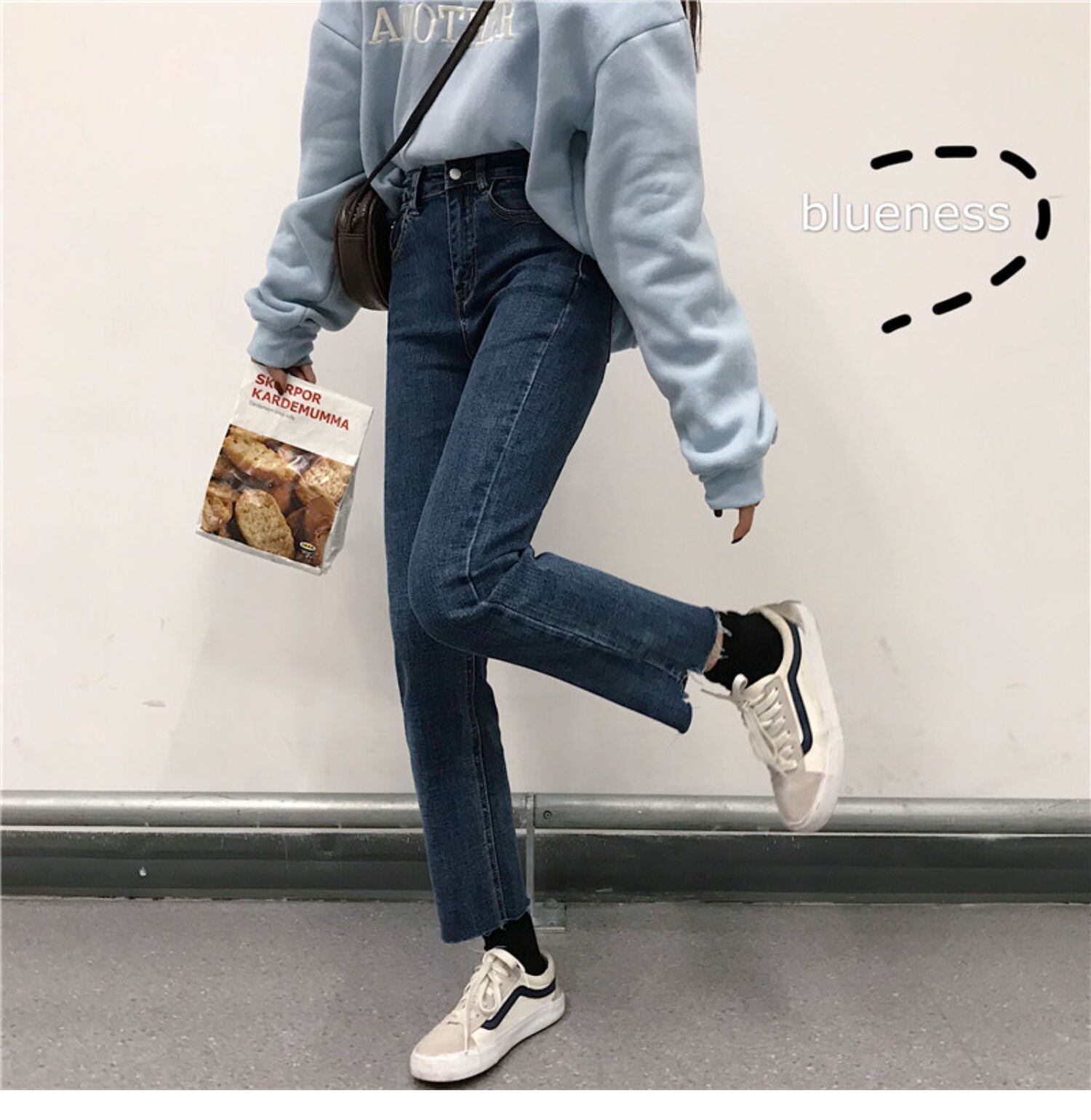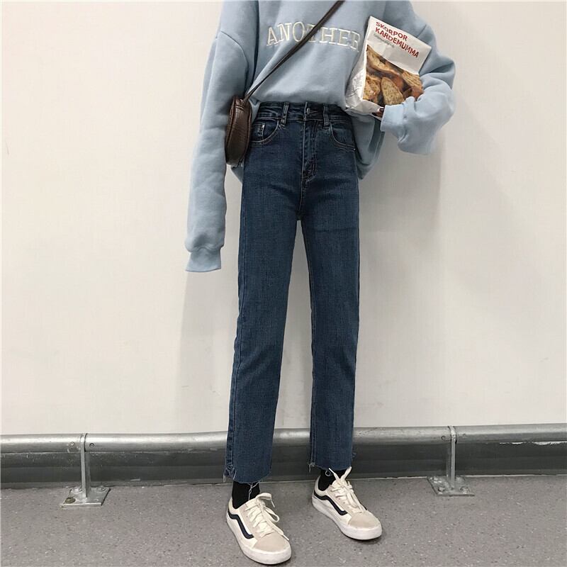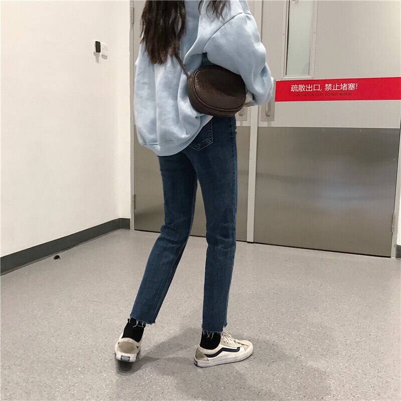 春と秋の洗浄苦しめられたスリムジーンズウエスト薄いストレートパンツ9パンツ学生パンツ女性 misskkl81567527722