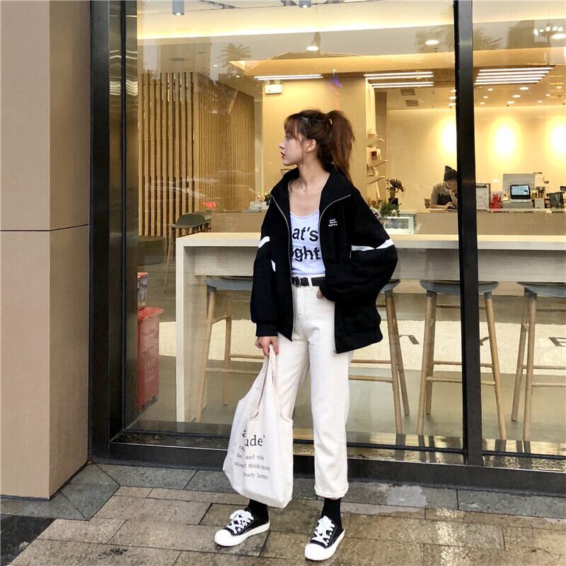 2020春と秋のルーズスタンドアップカラーバットスリーブセータージャケット女子学生カジュアル長袖ジャケットトップス misskkl28598109589