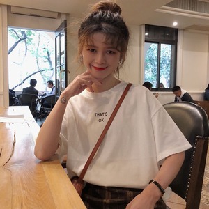 ファッション緩い薄い文字の半袖Tシャツの女性の夏のドレスネット赤いレトロ半袖Tシャツトップスのボトムスシャツ misskkl5402292915