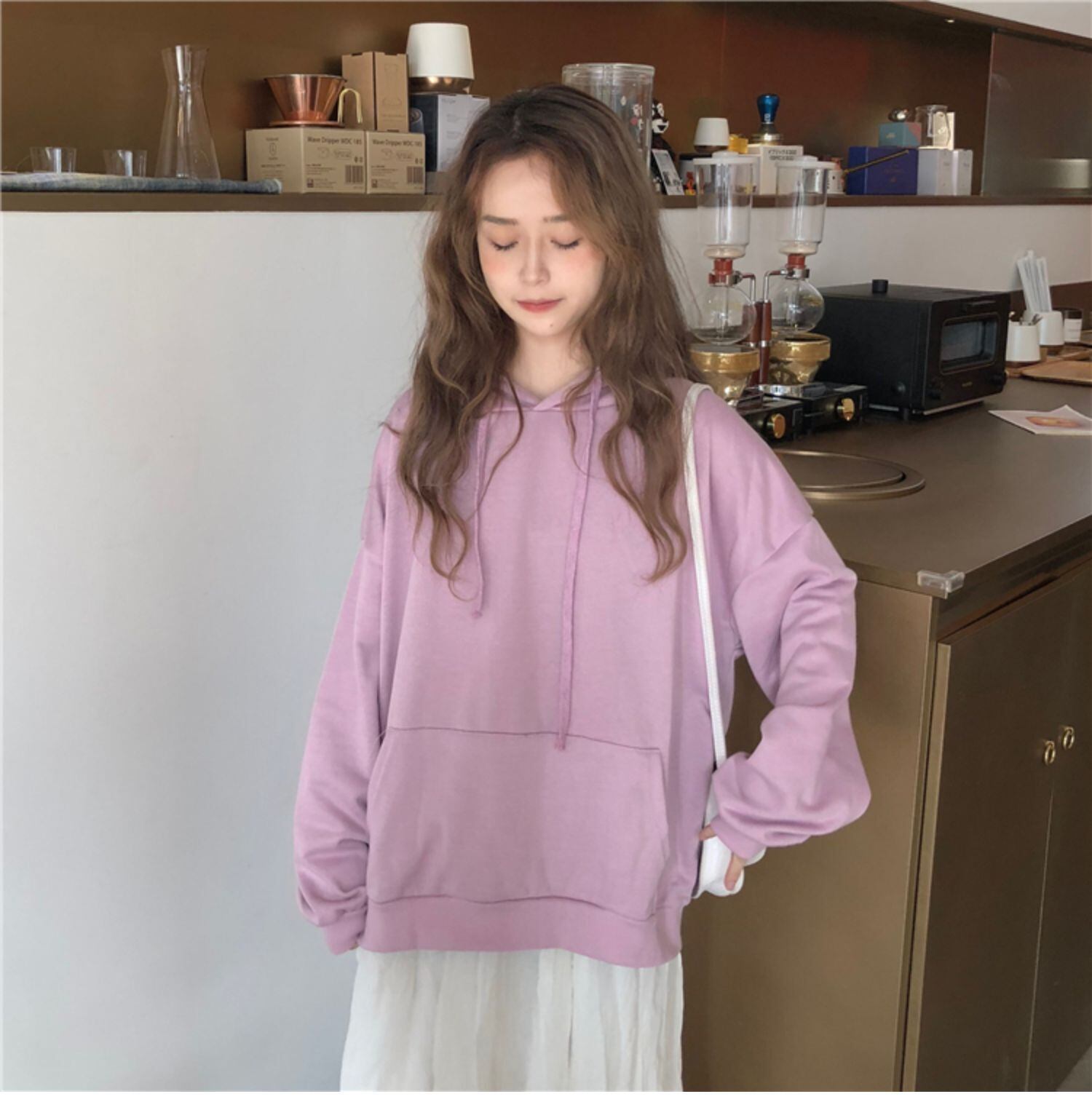 2020春と秋の新しいスタイルの緩い怠惰な純粋な色のフード付きトップスーパー火cec長袖セーター女性ジャケット misskkl28950162921