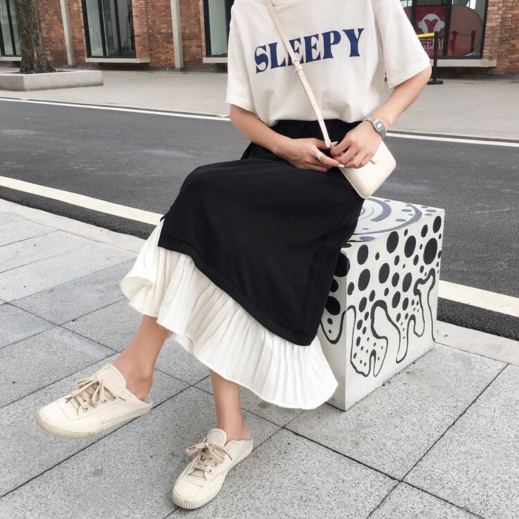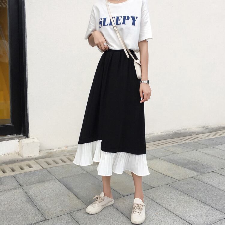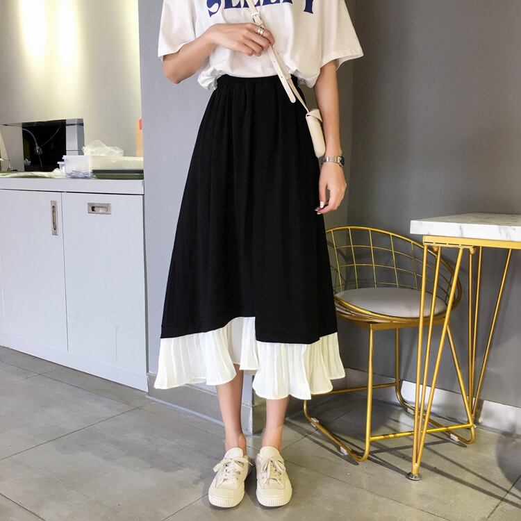夏のシフォンスカート女性緩いハイウエストロングスカートaラインスカートミドル丈2020新しい学生のスカート misskkl27210311563