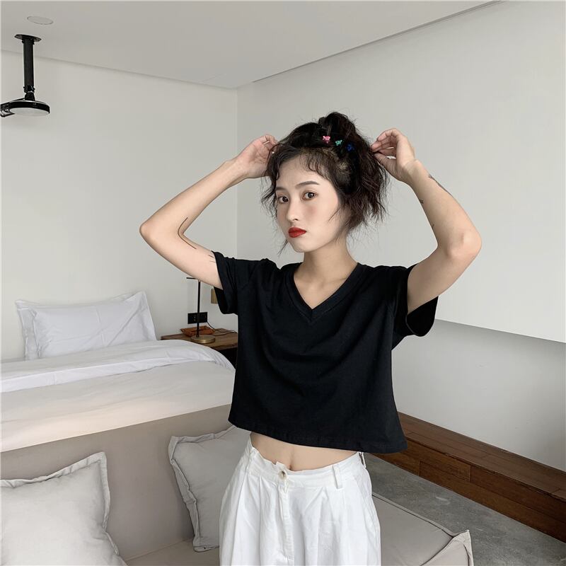 純粋な色の半袖Tシャツの女性の純赤のシンプルなトップ学生香港スタイルの半袖のシャツの潮の夏のバージョン misskkl42168408656