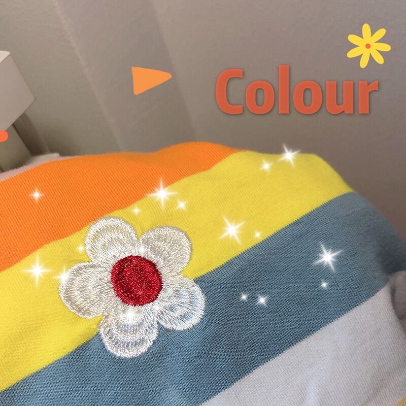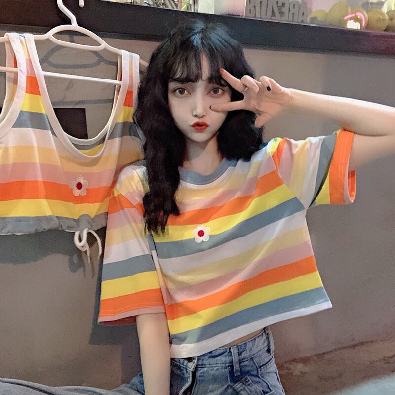 2020夏新作ヒュナ風レインボーストライプクロップトップルーズ半袖Tシャツレディースインタイド misskkl19434945183