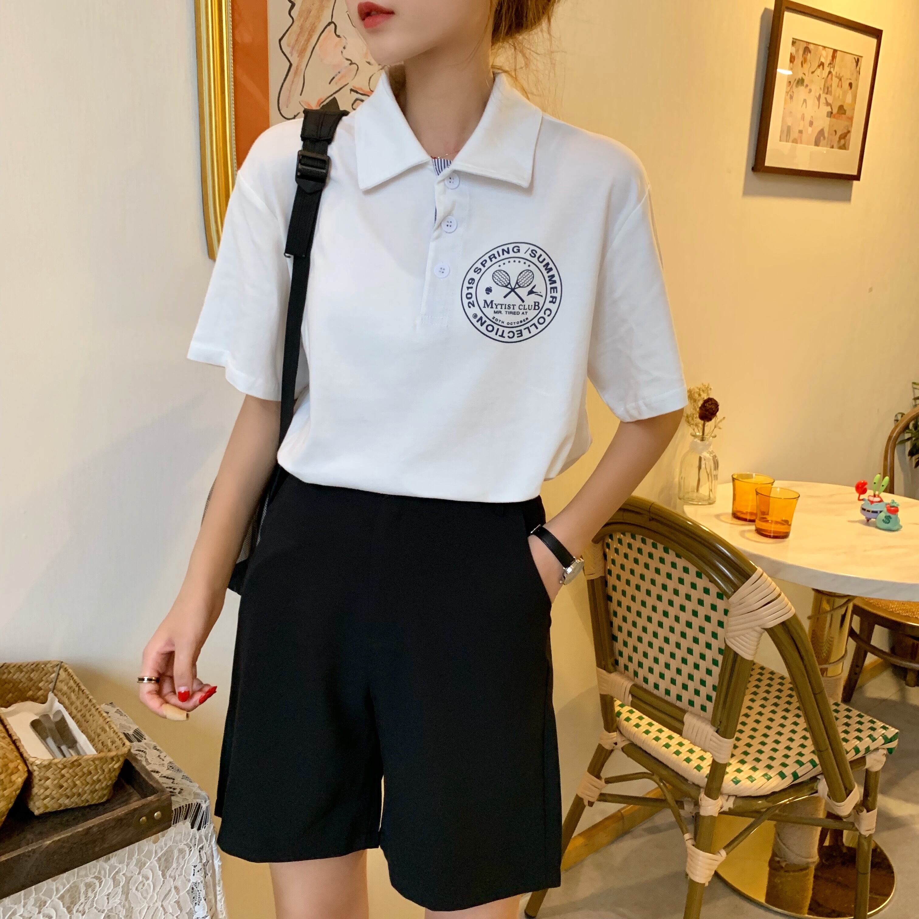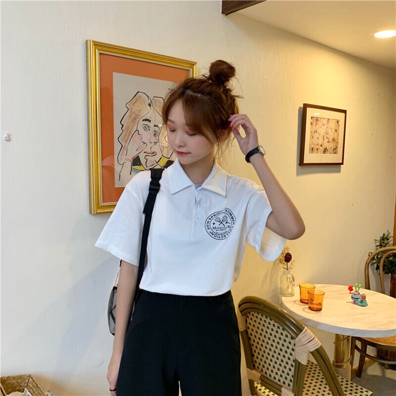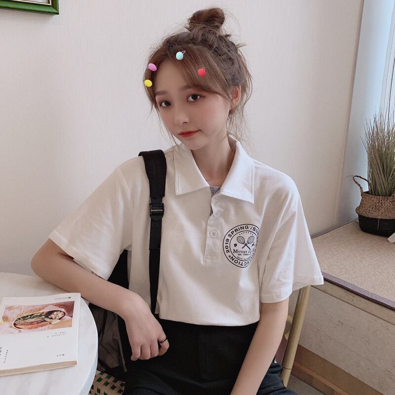 緩い半袖のポロシャツの女性の夏のバージョンの赤と白の女性の純白のスポーツとレジャーのTシャツ学生底入れシャツ misskkl93948212212