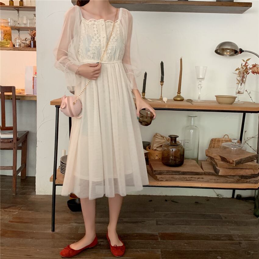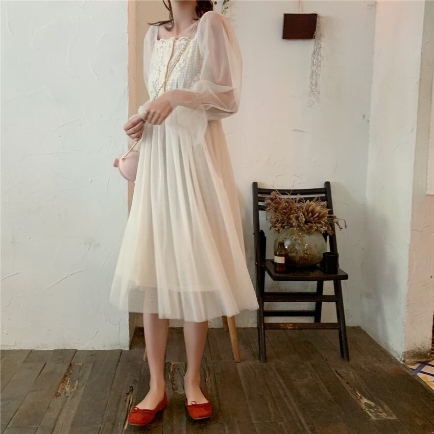 2020新しい秋のスカートは非常に妖精フレンチニッチネット糸ドレスレディース学生膝丈ロングスカートです。 misskkl70976503540