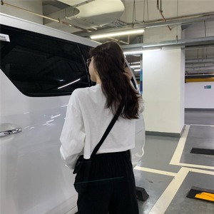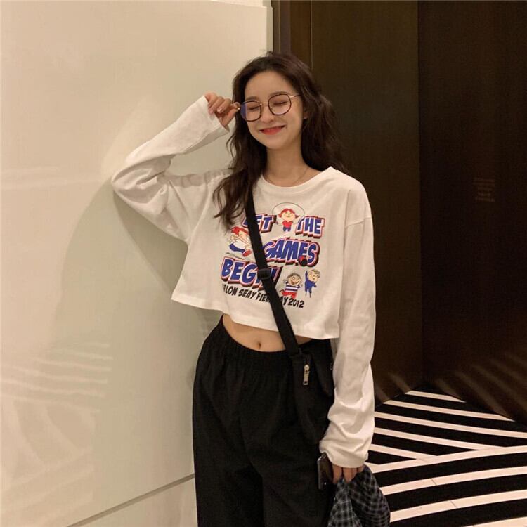 Miss Coco Li's Autumn 2020 Style Loose Navel Cropped Top White Long Sleeve T-Shirt Women misskkl18073332401