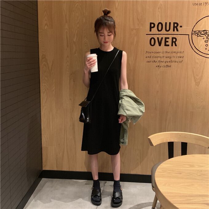 ミッドレングスベストスカートオーバーニースカートドレスレディース2020夏ハイウエストボトムスリトルブラックドレス misskkl88032384691