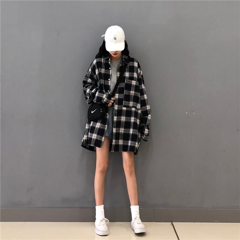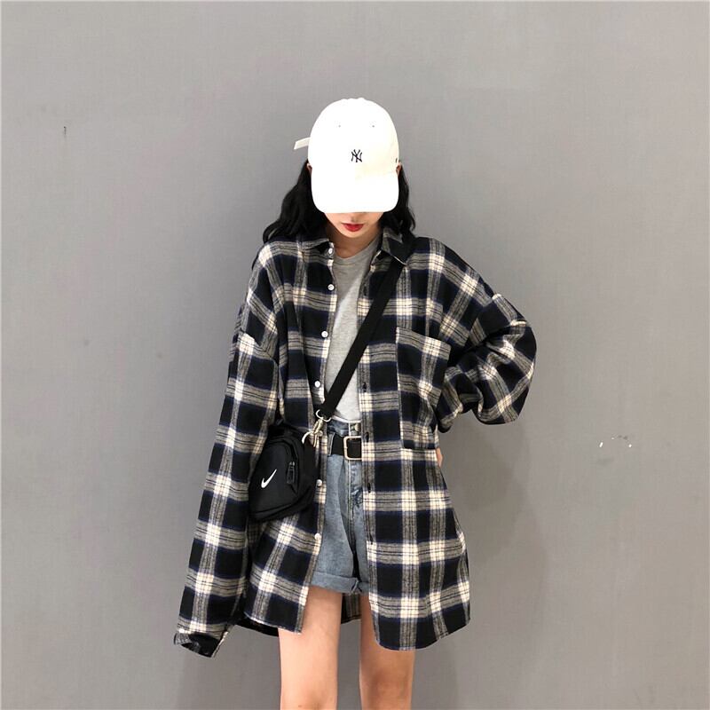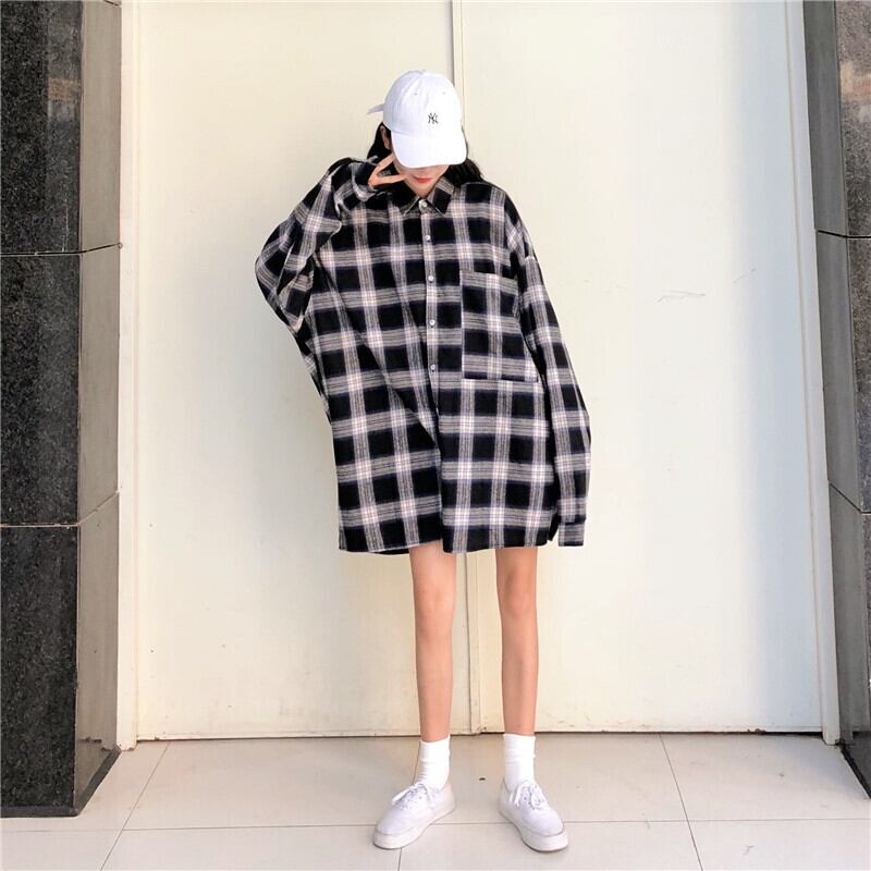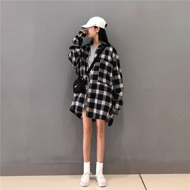 格子柄シャツ ジャケット スプリングオータムスタンダードルーズトップス レトロ 春物 秋物 misskkl63944302788