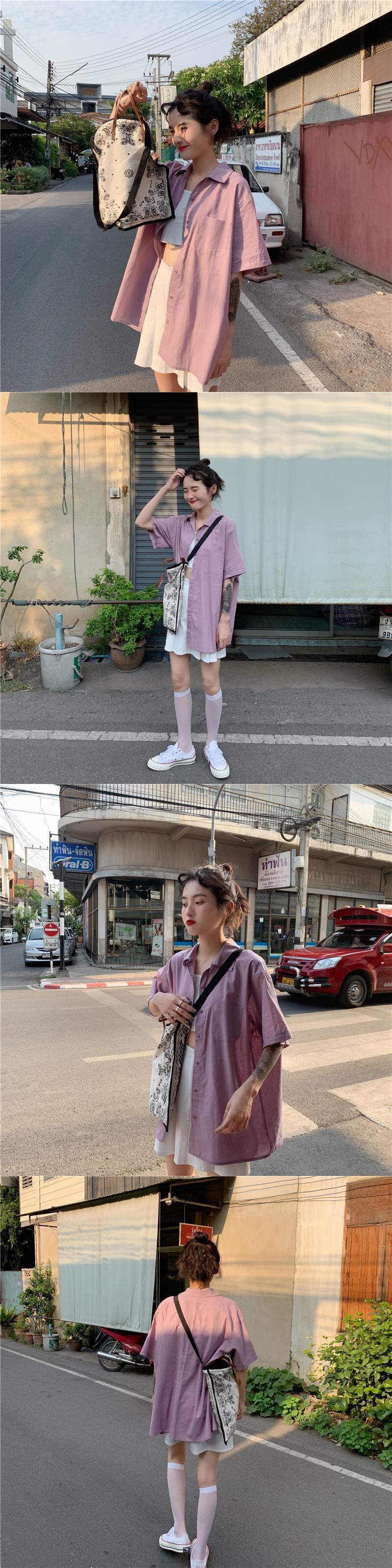 スキーマシャツレディースデザインセンスニッチミドル丈ルーズ半袖シャツ2019夏春夏バージョン misskkl36035043408