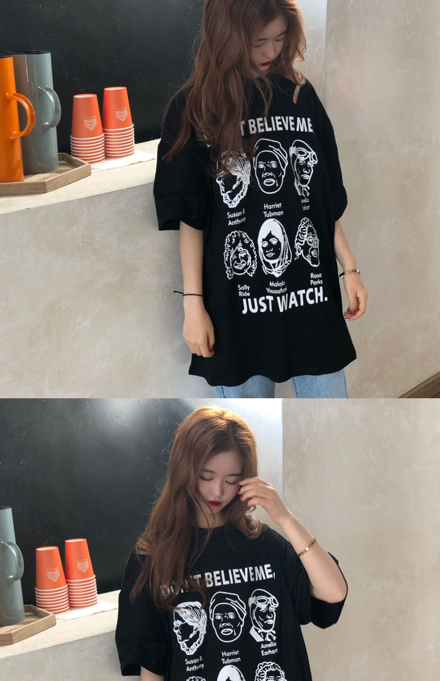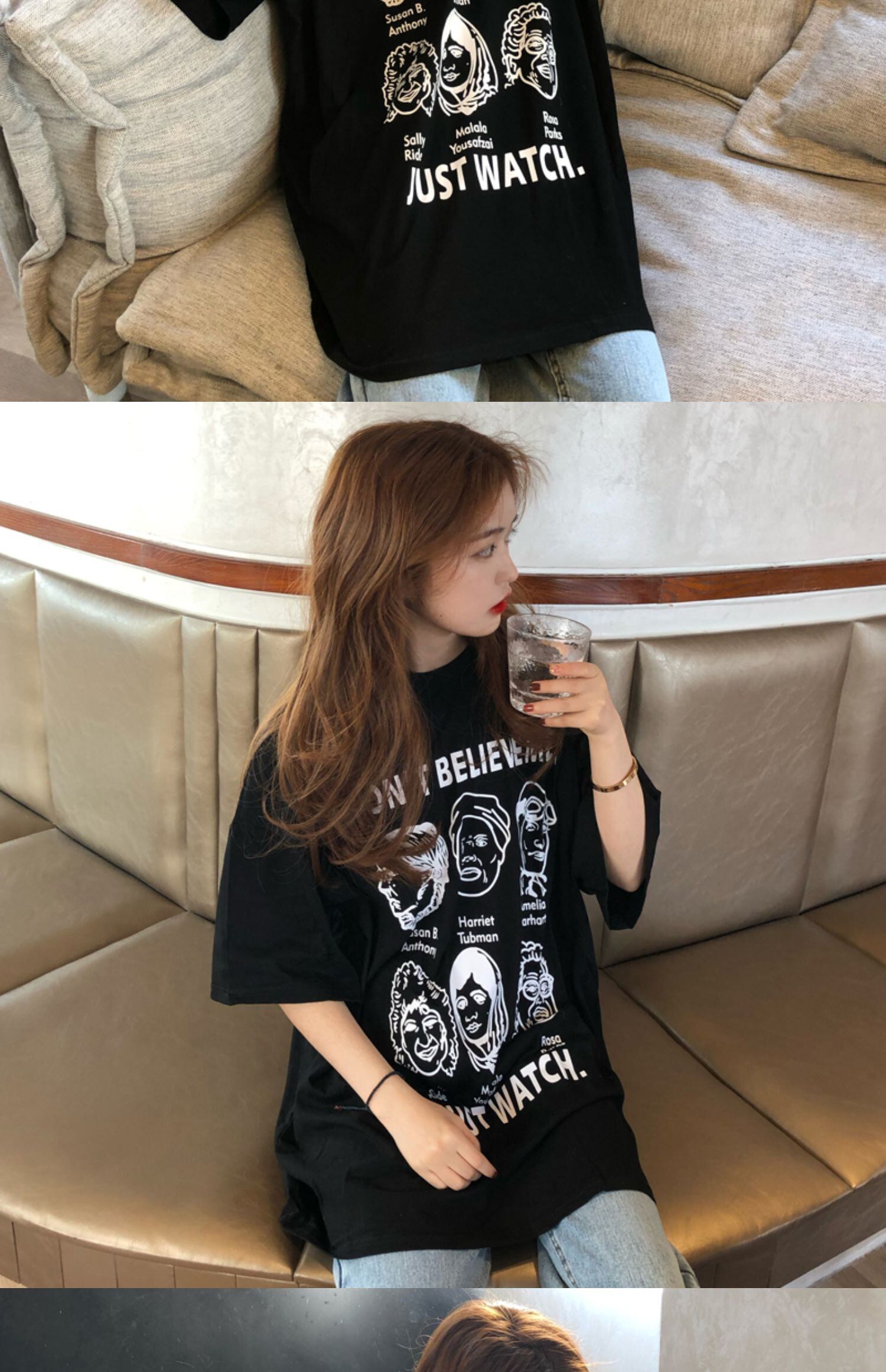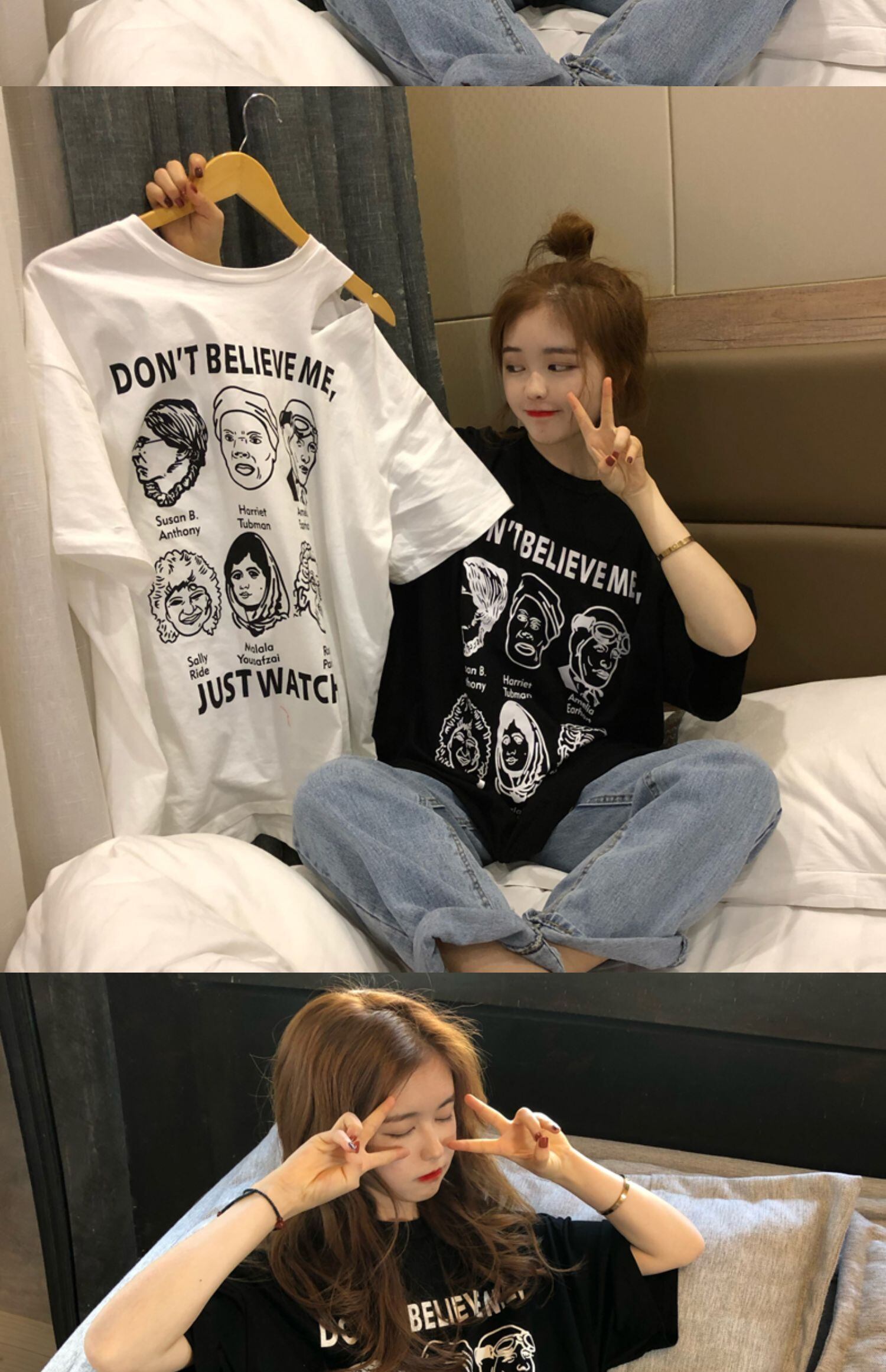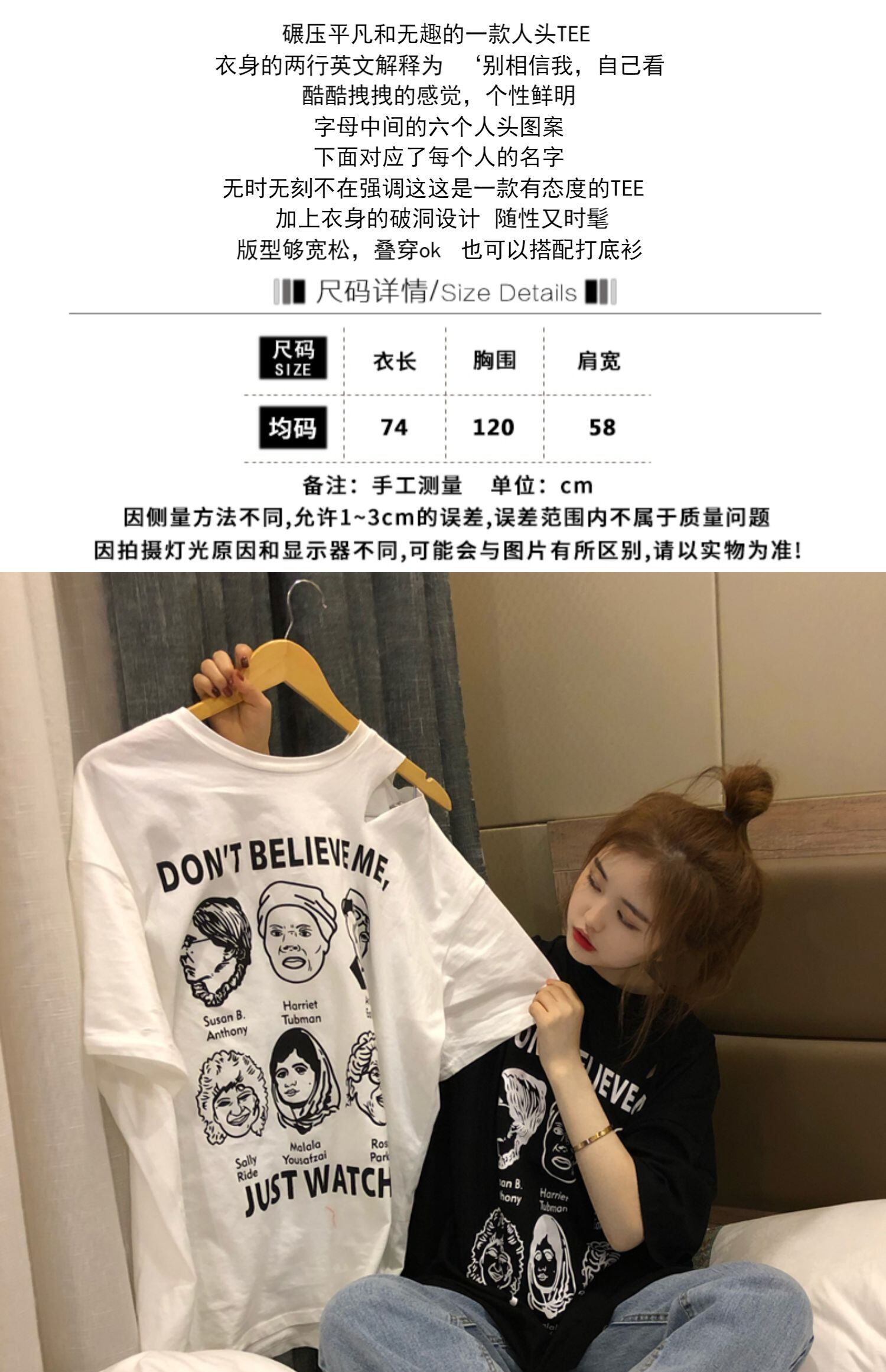 2020秋の女性の緩い、薄いヘッドプリントは半袖Tシャツの底入れシャツホワイトトップをリッピング misskkl89414272956