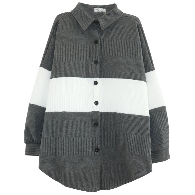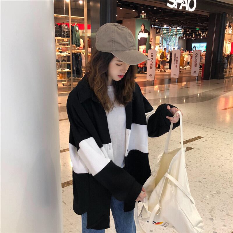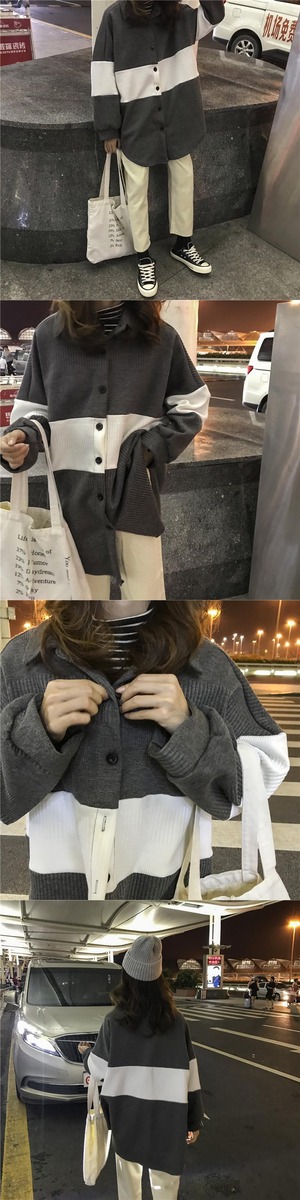 2020秋冬新作ミドル丈BF風長袖シャツルーズカラーマッチングニットジャケットレディースカーディガン misskkl98112752115