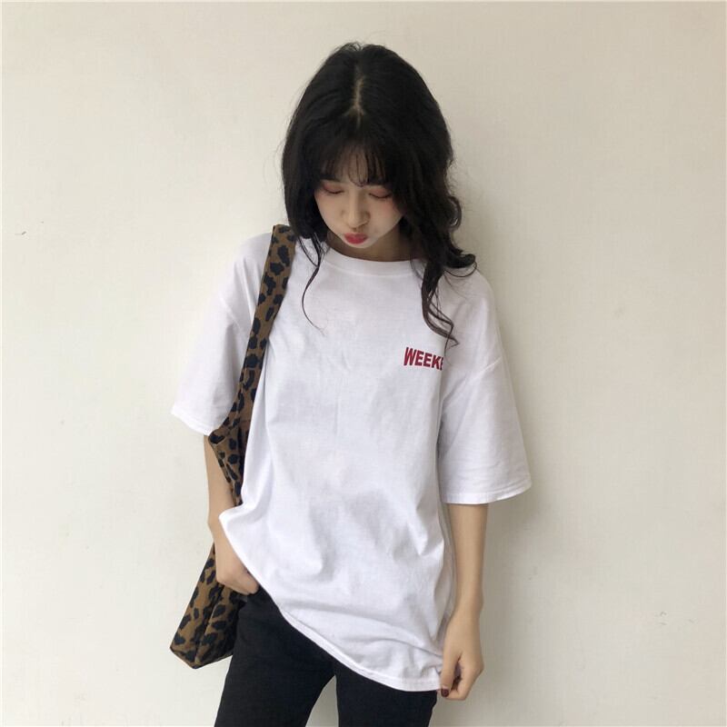 夏の緩いBF風半袖Tシャツ女性の原宿スタイルのすべての底入れシャツネット赤白半袖トップ潮 misskkl69567171849