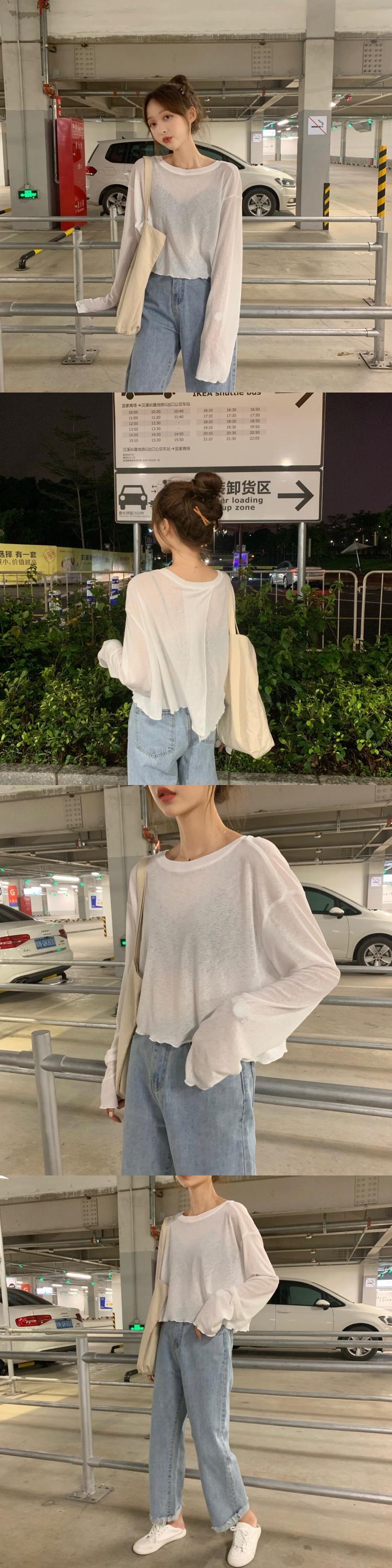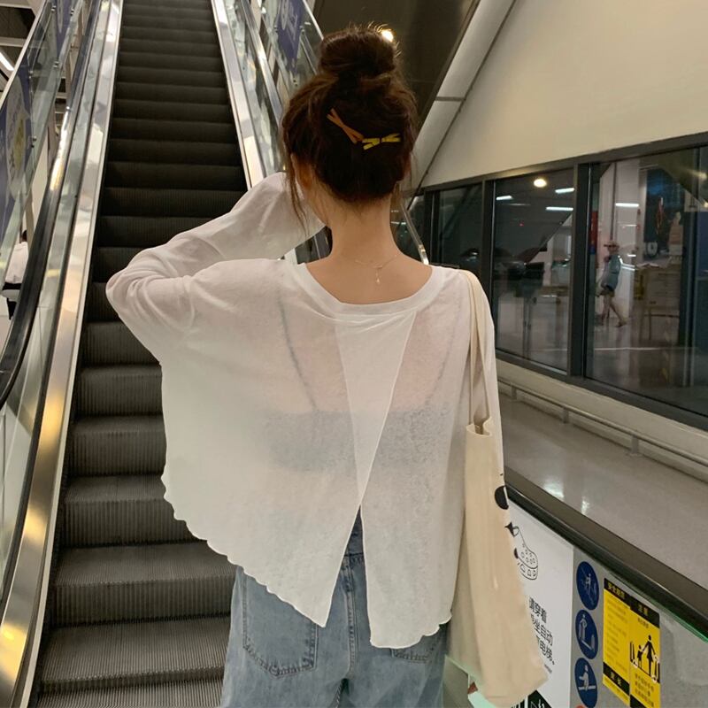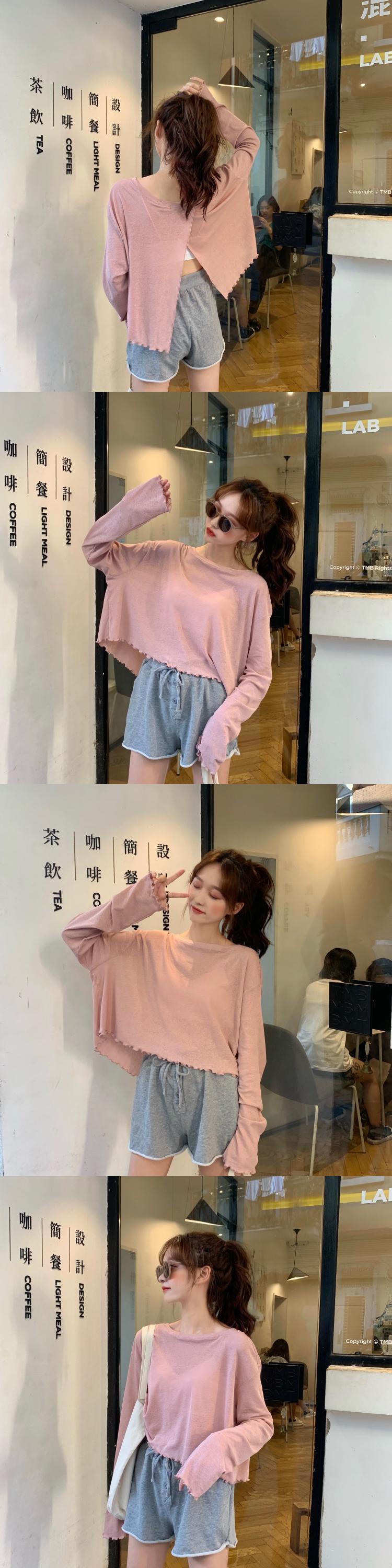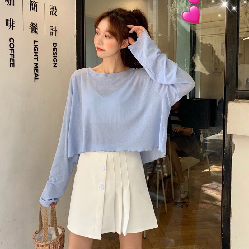 2020秋の新バージョンのinsネットレッドショートアンビリカルスーパーファイアートップシンルーズロングスリーブ日焼け止めTシャツの女性 misskkl46483697829