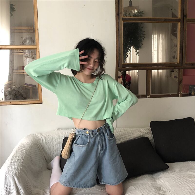 2020新しいバージョンのソリッドカラースリムスリムショートトップルーズ長袖日焼け止めTシャツ女子学生夏 misskkl47381281616