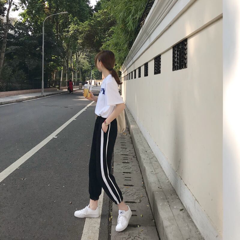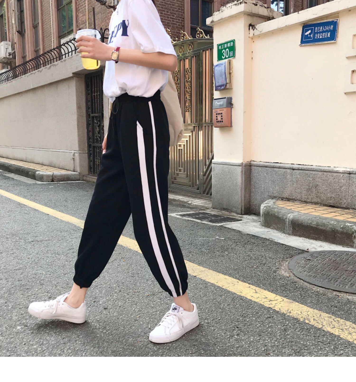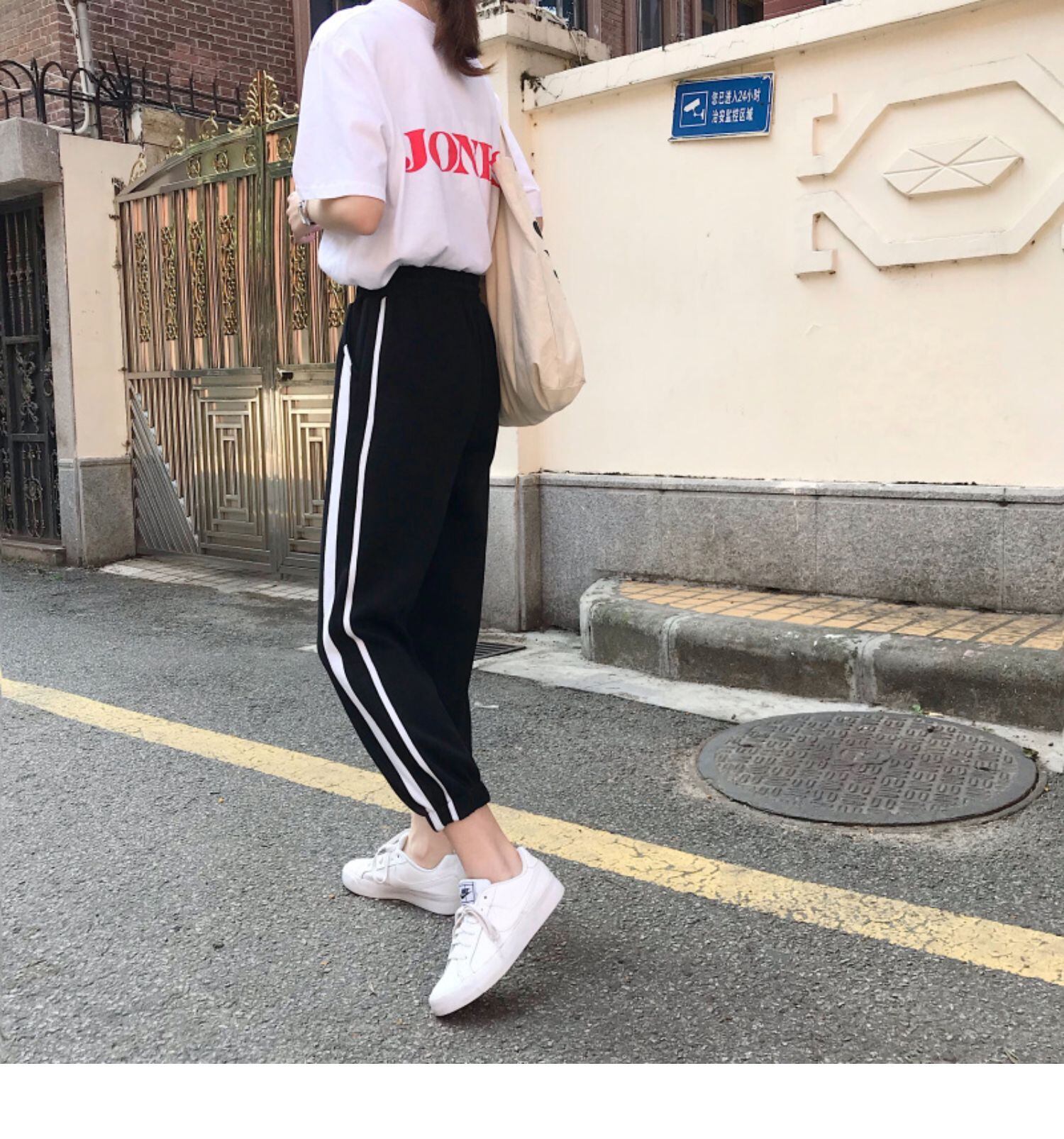 秋バージョンのゆったりした足と薄いハイウエストのカジュアルパンツの女性の学生の弾性ウエスト9点パンツスポーツストレートレッグパンツ misskkl25089878318