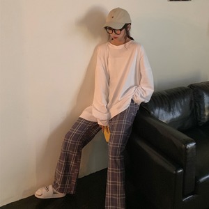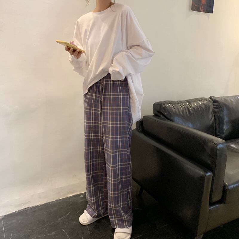 2020年の春と秋のバージョンの新しい怠惰なハイウエスト薄いモップズボン弾性ウエストチェック柄ワイドレッグパンツ女子学生 misskkl6195114675