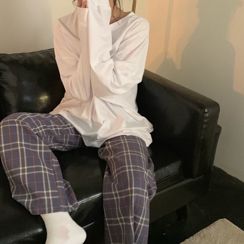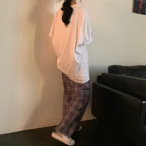 色:ホワイトTシャツシングルピース,チェック柄パンツ