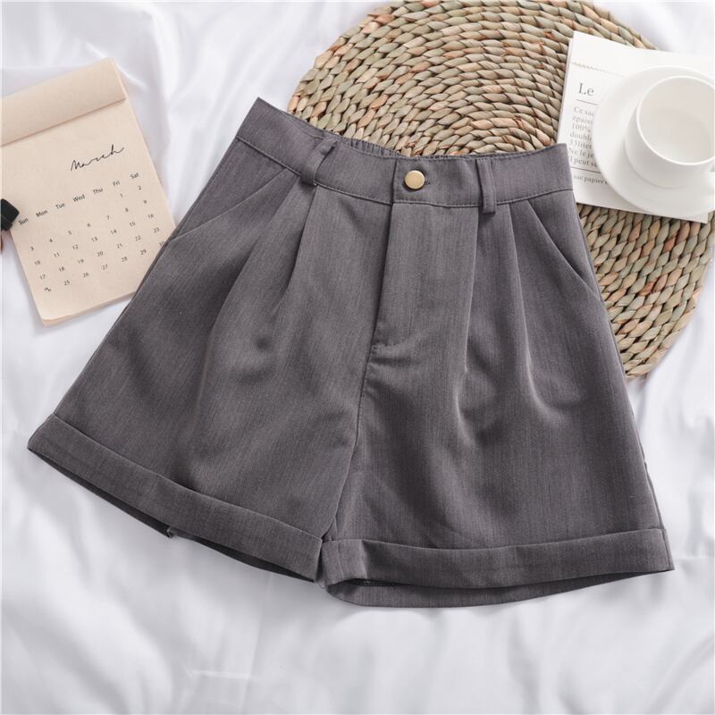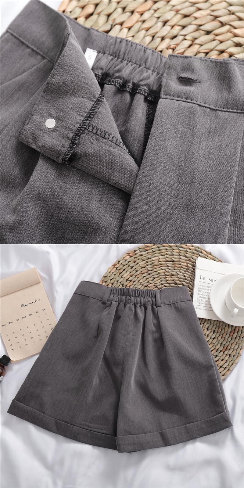 ソリッドカラーのオールマッチのカジュアルパンツスーツのショートパンツの女性のハイウエストの薄い緩いワイドレッグパンツパンツの夏バージョン misskkl75268083263