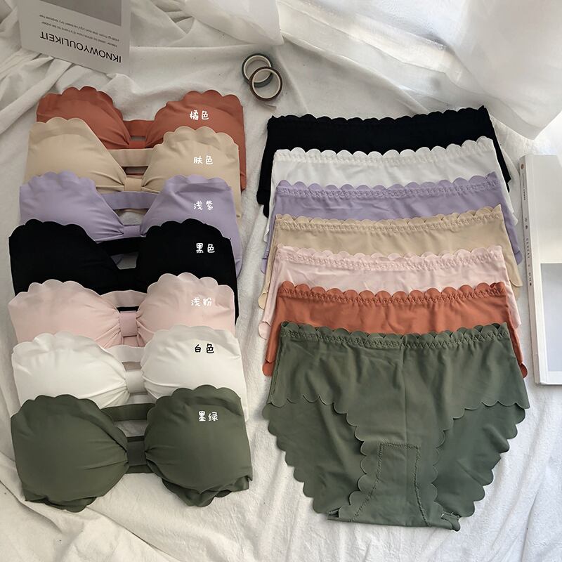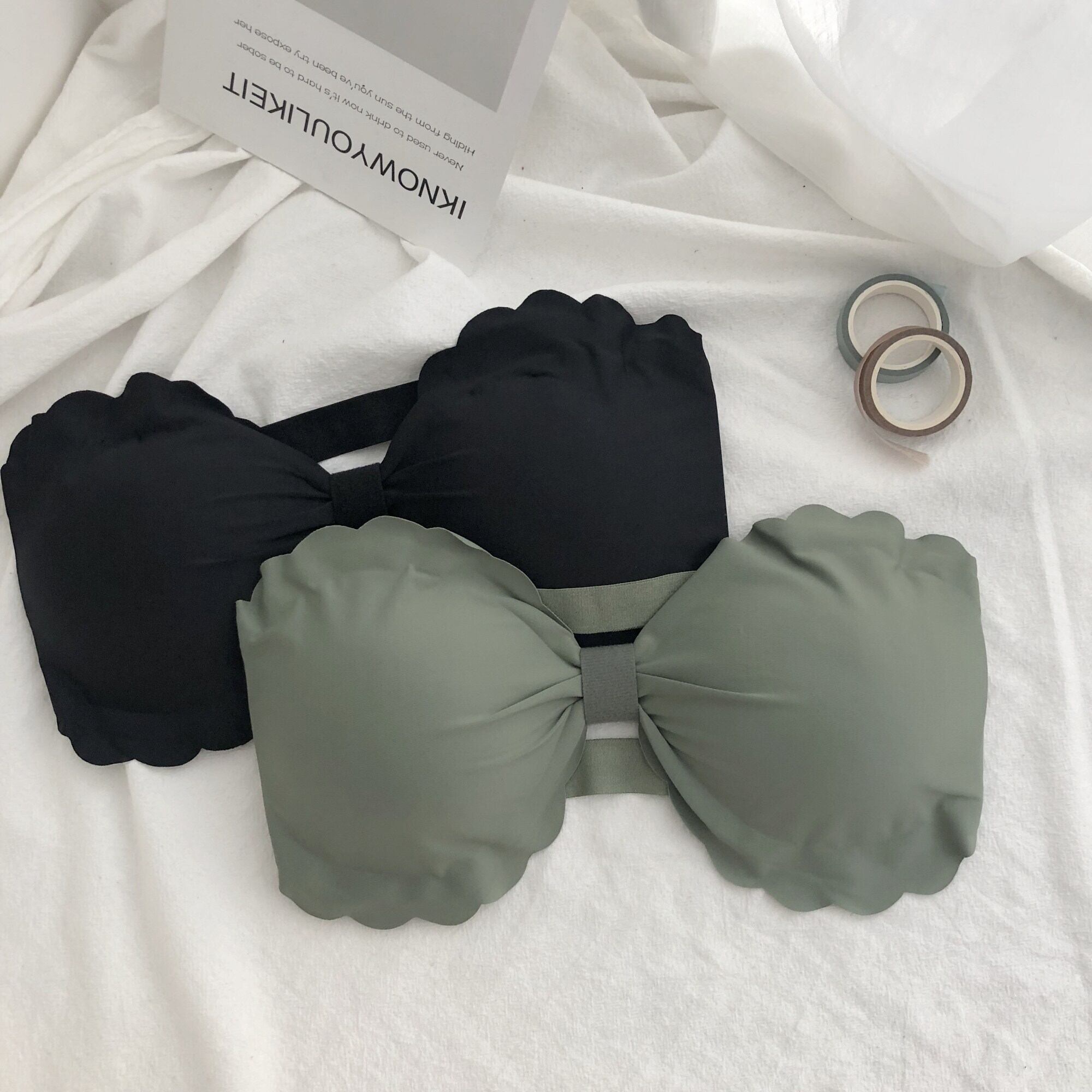 女の子のブラ、小さな胸、ストラップレスのインナートップ、スチールリングなし、セクシーなギャザー、薄いシームレスブラ、下着セット misskkl76756608778