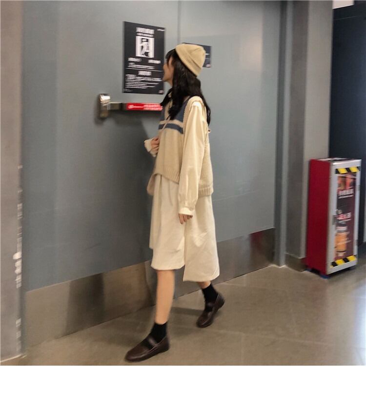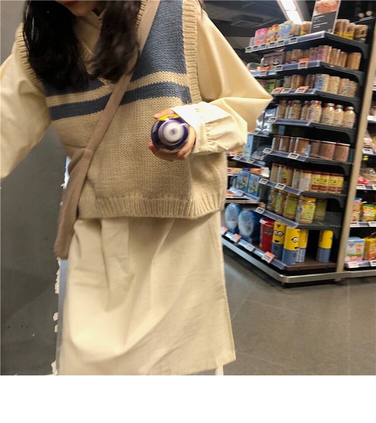 ファッションカジュアルスーツ春と秋の女性のミドル丈シャツドレス+ニットベストとツーピースベスト misskkl1954076450