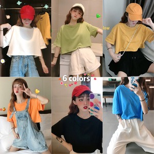 2020年夏の新バージョンのルーズで薄いショートクロップトップ全試合キャンディーカラー学生半袖Tシャツレディース misskkl65166035712