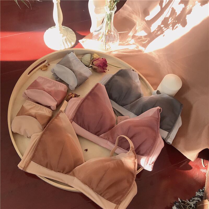 夏の薄いスチールリング小さなブラ女性の薄い収集下着パンティーセットセクシーなインナー摩耗シームレスブラジャー misskkl97217304167