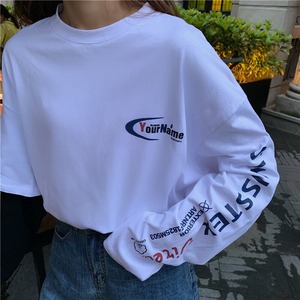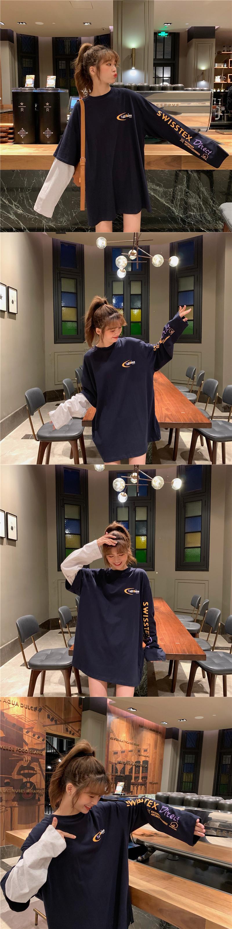 2020年の春と秋の新バージョンの偽のツーピースの大きいサイズのミドル丈の長袖Tシャツの女性のInsの潮ネット赤ルーズトップ misskkl58264348786