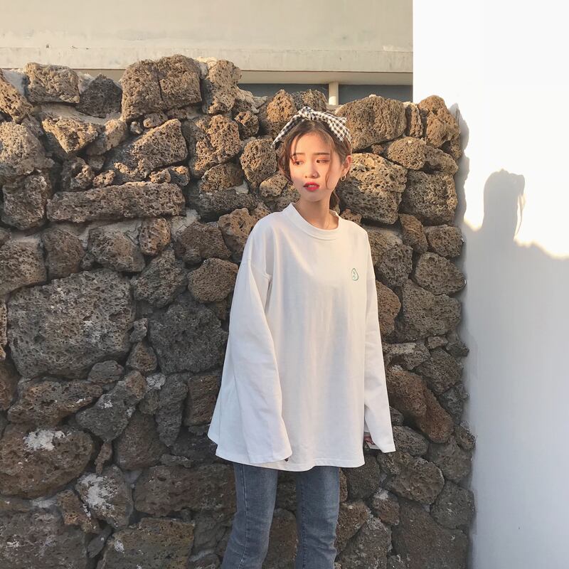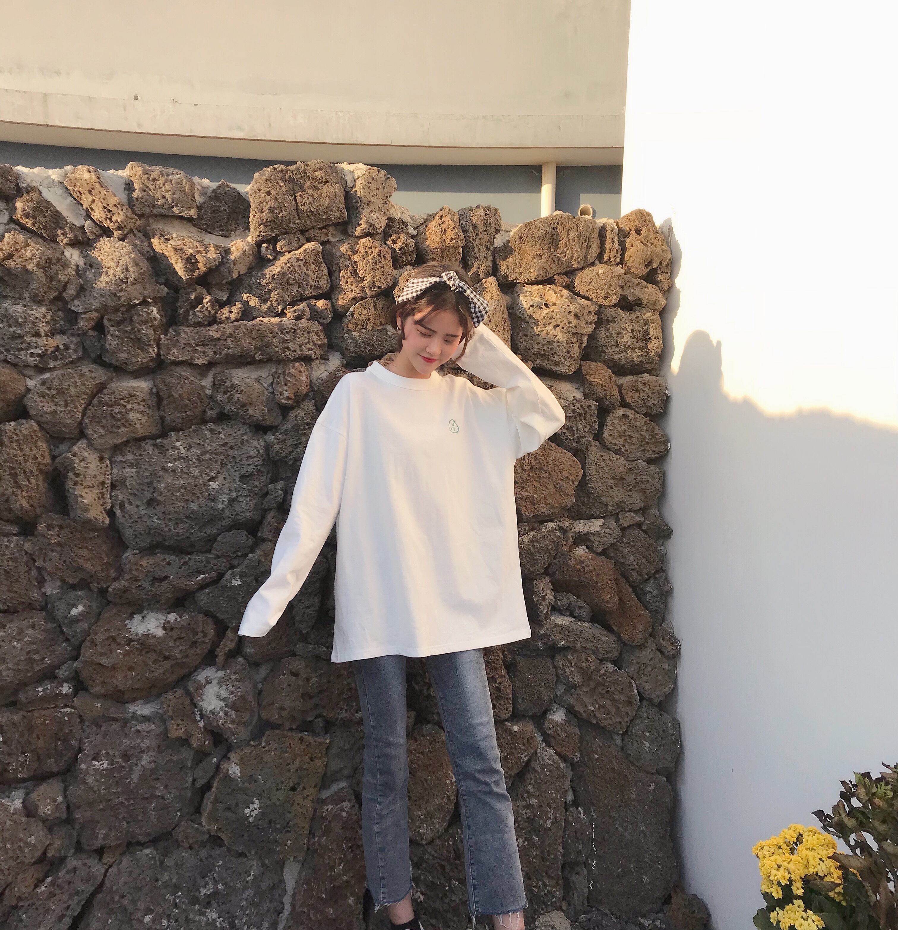 新しい秋のドレスの女性のドレス刺繍が施されたシンプルな緩い野生の長袖Tシャツ、白のトップスとボトムスのシャツ misskkl27106565335