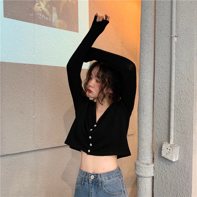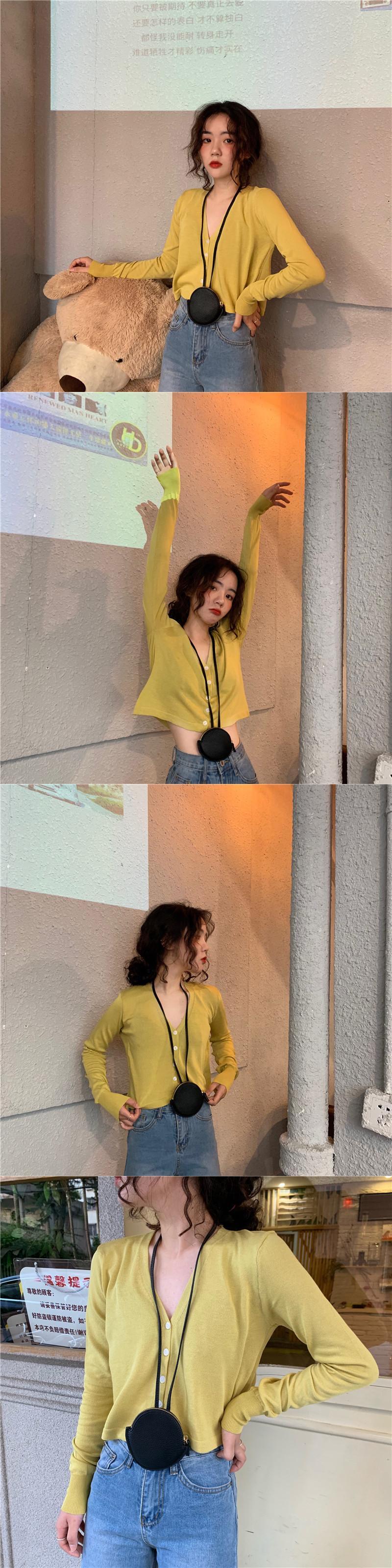 オータムスタイルスリムショートクロップトップ トップス Vネック薄手ニットシャツ レディース ロング 秋物 misskkl68588889068