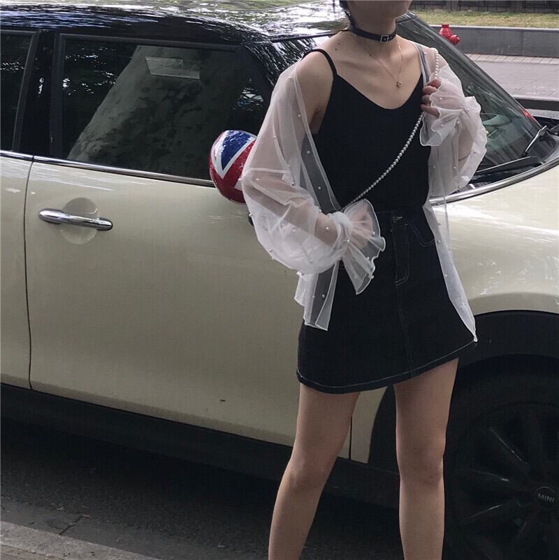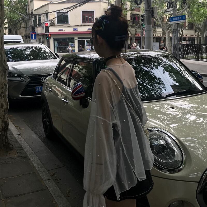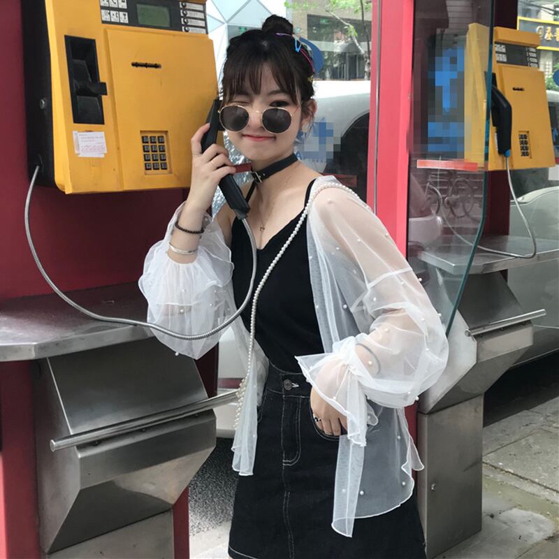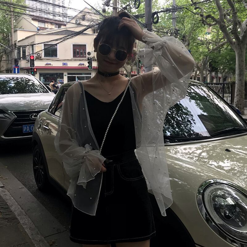 2019年夏の新しい妖精小さな新鮮な緩い野生メッシュパール日焼け止めホーン長袖カーディガン婦人服 misskkl98060183305