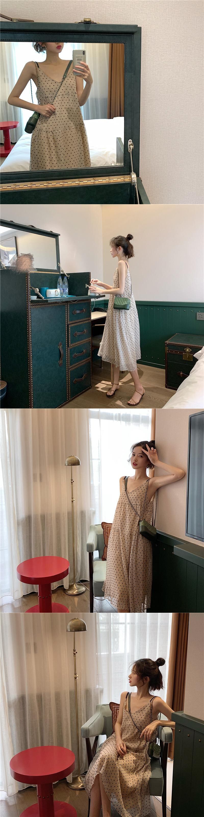 夏のスカートの愛のサスペンダードレス女性2019新しい気質ウェーブポイント緩いと妖精サスペンダースカート misskkl50623797545