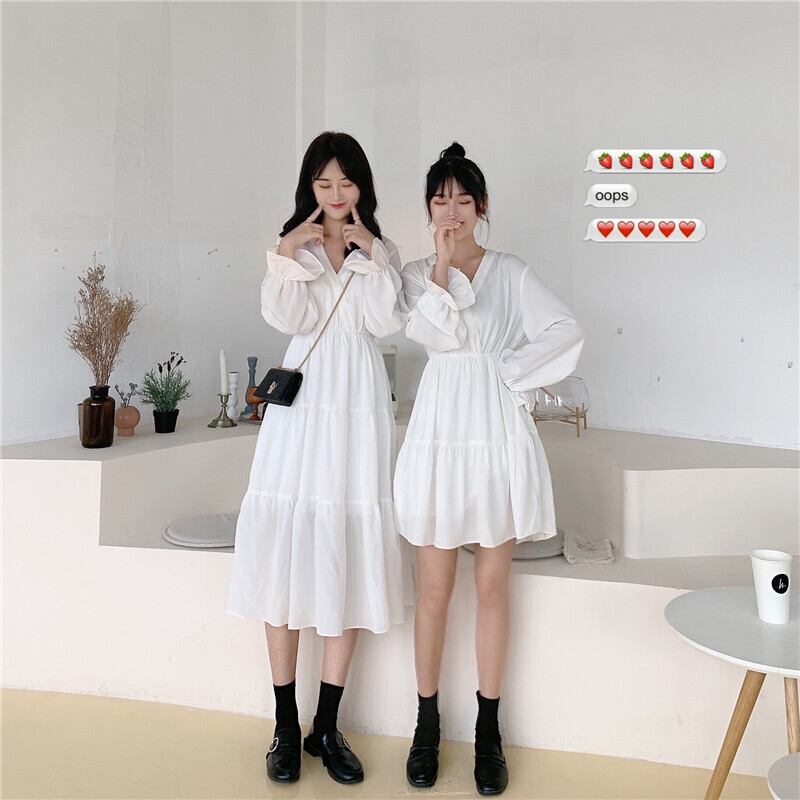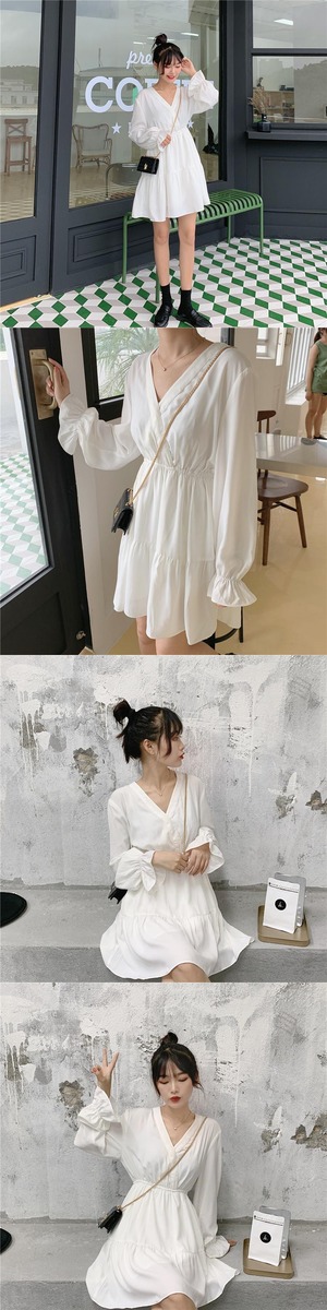 スプリングオータムVネックドレス ウェストスリムスカート ロング 春物 秋物 misskkl71926204578