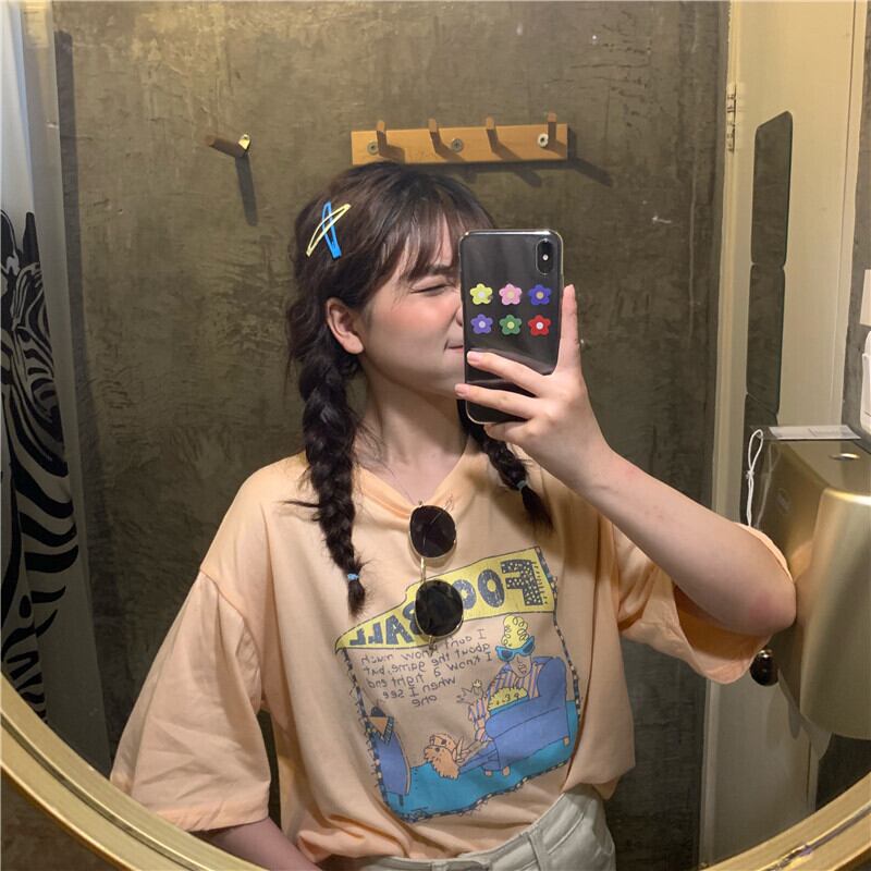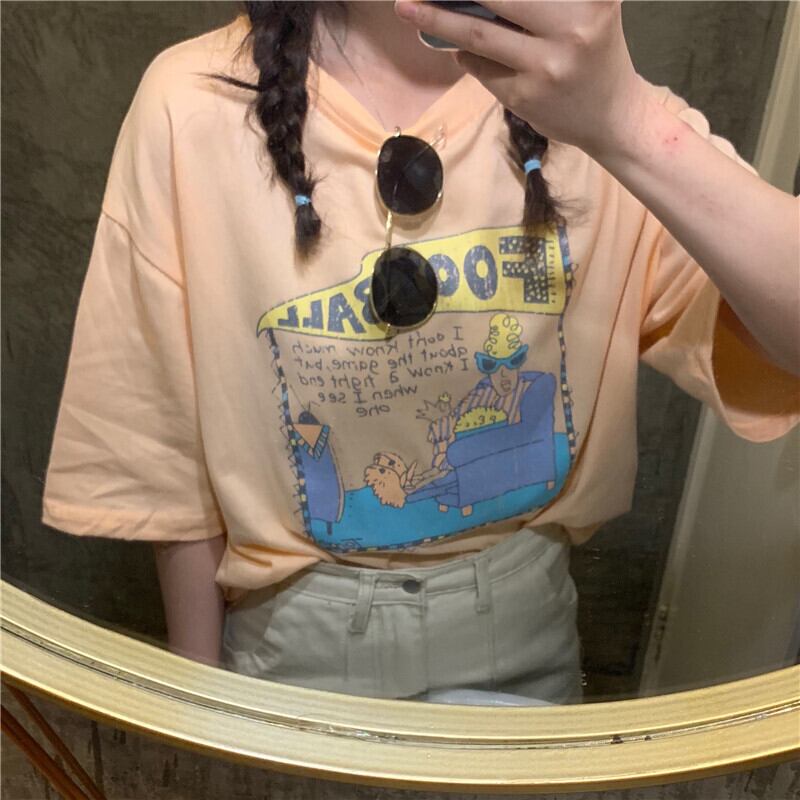 ゆるい漫画の半袖Tシャツ女性のネット赤のカジュアルなトップス原宿スタイルの学生の半袖底入れシャツの夏バージョン misskkl97339742233