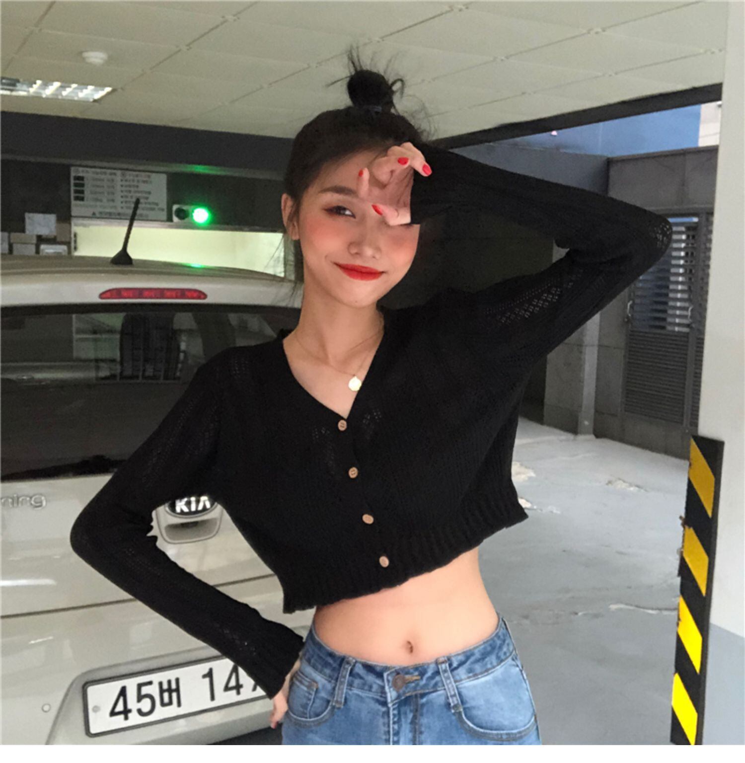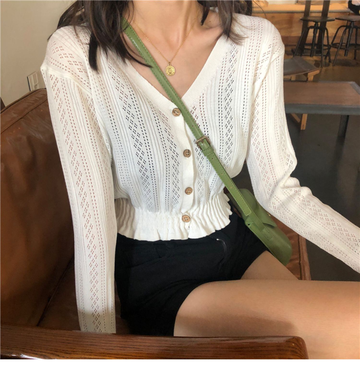 春と秋バージョン2020新しいフレンチニッチウエストショートスリム痩身中空チェーンリンク花長袖セーター女性 misskkl92201990467
